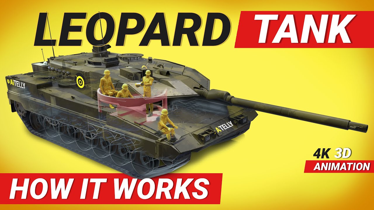 Time Stamp 0:00 Leopard 2 0:10 Interior 0:45 Tiger Tanks Panzer Tanks 0:51 Entering Service 1:02 Joint Programme with M1 Abrams 1:13 Comparision Leopard 2A4 2A5 1:23 Singapore Leopard Evolution 1:33 Indonesian Leopard Revolution 1:42 Wedge Space Add On Armour 2:13 Rheinmetall Rh-120 Smooth Bore 2:35 Specs 3:10 Comparision with T90 and M1 A2C Abrams 3:12 Crew 3:42 Ammunition Storage Rack 4:03 High Explosive Round 5:03 Spaced Armour How it Works 5:26 Leopard 2 reactive armour (Suggested) 5:34 EMES 15 TELESCOPE 6:04 STEP 1 Hunter Killer Engagement Cabalities 6:21 STEP 2 Loader 6:26 STEP 3 Gunner 6:58 Engine 7:32 How to Drive a Tank 7:58 Pros and Cons 8:41 Cons The Leopard 2, was the first version of the tank. While the Leopard 2A4, was the most common version of the Tank, with around 3500! produced till today. This is the Leopard Evolution which introduced wedge-shaped, spaced add-on armor to the turret front, and the frontal area of the sides. The frontal "heavy" third of the side skirts were replaced with a new, stronger armour. Stripping all the covers reveals the Lehperd 2A4 inside it. This is very common, in military engineering where Tanks, are re fitted with upgrades and some improvements in the main armor composition. This is the Leopard 2 "A"6 which Includes the addition of the Rheinmetal, One 20 mm, "L" 55 smoothbore gun, and a number of other changes. One of the major Exterior differences is the gun, Let us compare this to the older models to understand it's gun size. Find us on Facebook https://www.facebook.com/Aitelly-1089... Support us in Buy Me a Coffee https://www.buymeacoffee.com/aitelly Instagram https://www.instagram.com/aitelly3d/ Twitter https://twitter.com/aitelly3d We make it on Blender Download it is free and Safe https://www.blender.org/download/ Peace Out As a Small Channel We encourage you sharing our Videos , But Kindly be advised that any unofficial translations or editing of our work in any medium will be considered a breach of our intellectual property rights. Apologies for the Legal Language, This happens because we had faced a lot of Duplicates Contents through Experiences ;) This has been a result of Big Channels Duplicating our Contents Ripping our original hard work which we have created from Scratch from Modeling to Rigging to Animation to Rendering.So we had to involved Lawyers.