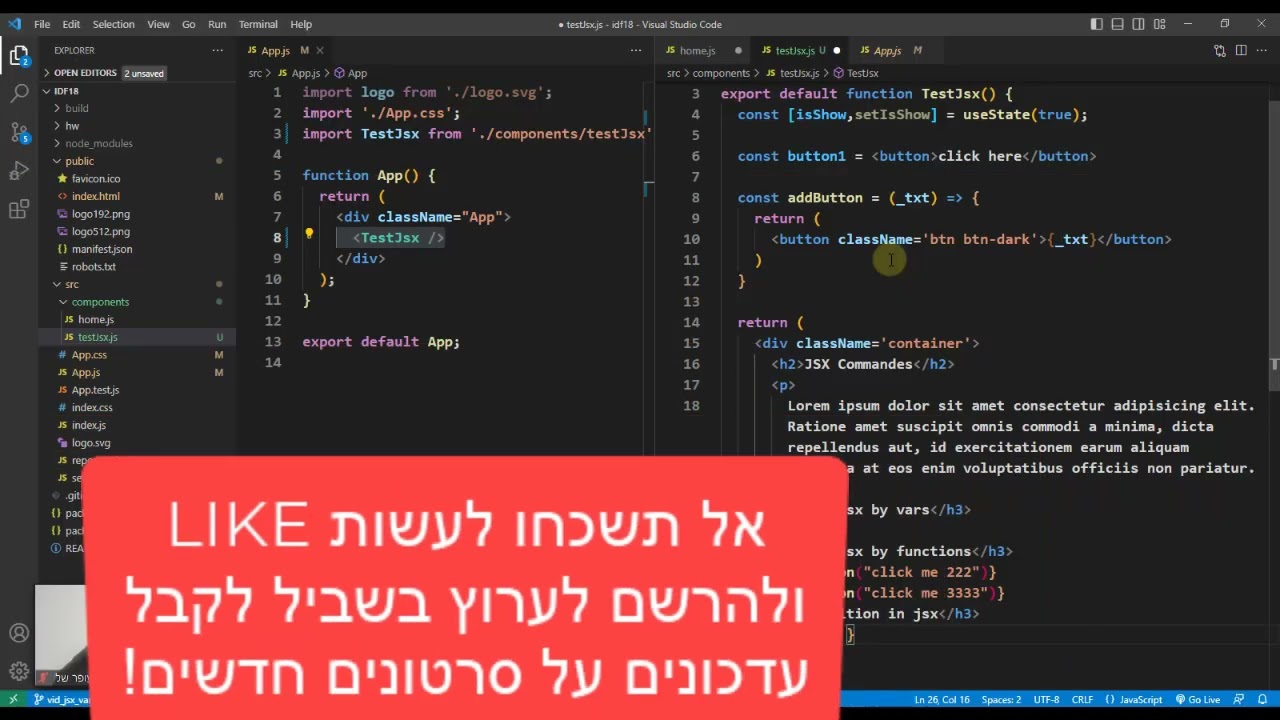 REACT HOOKS 🧁⚓ - עבודה מול JSX , משתנים , תנאים , פונקציות ועוד