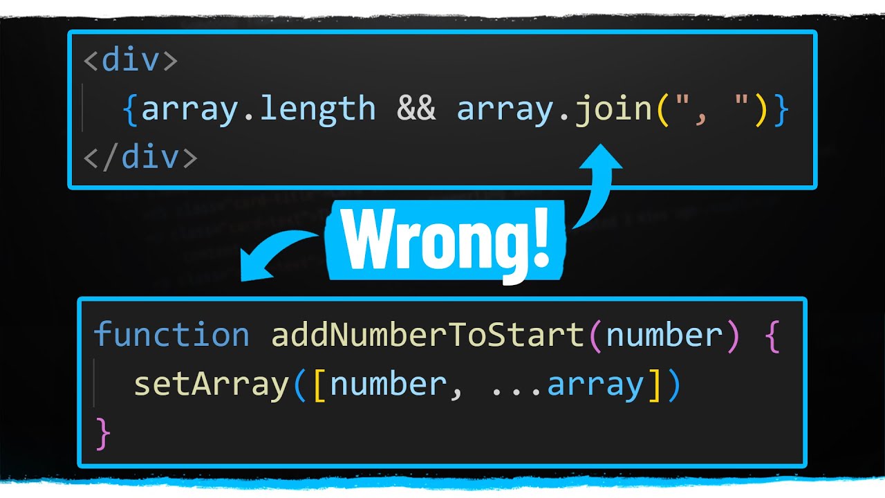 FREE React Hooks Simplified Course: https://courses.webdevsimplified.com/react-hooks-simplified Full React Simplified Course: https://reactsimplified.com I have been teaching React for years and have seen countless beginner React mistakes, but there are 3 mistakes that stand far above the rest that I see nearly every developer make (even more experienced developers). In this video I go over what those 3 mistakes are as well as how to avoid them so you can become a master of React. 📚 Materials/References: FREE React Hooks Simplified Course: https://courses.webdevsimplified.com/react-hooks-simplified Full React Simplified Course: https://reactsimplified.com Passing Functions As Variables Video: https://youtu.be/7UMuJMiNjSk Passing Functions As Variables Article: https://blog.webdevsimplified.com/2020-10/javascript-functions-as-arguments Short Circuiting Video: https://youtube.com/shorts/8mvNzU7DpO4 Short Circuiting Article: https://blog.webdevsimplified.com/2019-10/what-is-short-circuiting Reference Vs Value Video: https://youtu.be/-hBJz2PPIVE Reference Vs Value Article: https://blog.webdevsimplified.com/2021-03/js-reference-vs-value useState Video: https://youtu.be/O6P86uwfdR0 useState Article: https://blog.webdevsimplified.com/2020-04/use-state StrictMode Video: https://youtu.be/XUwzASyHr4Q 🌎 Find Me Here: My Blog: https://blog.webdevsimplified.com My Courses: https://courses.webdevsimplified.com Patreon: https://www.patreon.com/WebDevSimplified Twitter: https://twitter.com/DevSimplified Discord: https://discord.gg/7StTjnR GitHub: https://github.com/WebDevSimplified CodePen: https://codepen.io/WebDevSimplified ⏱️ Timestamps: 00:00 - Introduction 00:30 - Mistake #1 08:12 - Mistake #2 12:02 - Mistake #3 #ReactJSMistakes #WDS #ReactJS