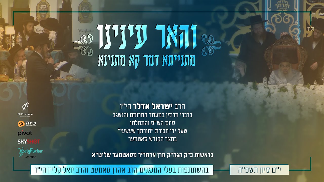 "תורה הקדושה התחנני בבקשה" בימים אלו - "בין כסה לעשור" - אשר מזכירים בהם את זכות התורה ולומדיה, כזכות ומגן לשנה החדשה המתחדשת עלינו, מפרסם הגראמער, הבעל מנגן והיוצר ישראל אדלר גראמען מיוחד אותו כתב וביצע במעמד הנשגב של סיום הש"ס של חבורת "תורתך שעשעי" בחצר הקודש סאטמער בראשות כ"ק מרן אדמו"ר מסאטמאר שליט"א שהתקיים בארצות הברית בחודש סיון האחרון. הייתה זו התרגשות מיוחדת וראשונה במינה בחצר הקודש סאטמער, עת נערך סיום הש"ס בפעם הראשונה לאחר שנלמד יחדיו על ידי כל בני הקהילה. המעמד המרומם התקיים במרכז הכנסים Rockland Community College במונסי לשם הגיעו משעות הצהריים המוקדמות אלפי הלומדים ולמדו יחדיו חברותות כאשר אף האדמו"ר עצמו ישב ולמד עם החברותא הקבועה שלו במשך שעות ארוכות, כשלאחר הלימוד התכנסו כל בני הקהילה למעמד מפואר של סעודת סיום הש"ס. בלב האירוע עלה אחר כבוד הגראמער, הבעל מנגן והיוצר ישראל אדלר שהוזמן במיוחד לארצות הברית להופיע במעמד ובמשא מוזיקאלי סוחף ומרגש הרטיט את לבבות ההמונים בגראמען המיוחד אותו כתב וביצע. יחד עימו הופיעו בעלי המנגנים: אהרלה סאמעט ויואלי קליין עם מקהלת שירה היוקרתית בניצוחו של יואלי הורביץ עם תזמורתו המופלאה של יואלי פישר. האירוע הופק על ידי החברה המובילה pivot של שלומי שטיינמץ, יחד עם אלי פרידמן. In these days – “Bain Keser LiAsor” – which remind us of the zchus Torah and those who learn it, as a zchus and protection for the new year that is renewing itself upon us. The creator , the musician and the composer Israel Adler publishes a special gramain that he wrote and performed for the Siyum Shas of the “Torascha Sha’ashuoy” group in the holy courtyard of Satmar, led by the late Maran Admor of Satmar Shlita, which took place in the United States last Sivan. It was a special and first-of-its-kind excitement in Satmar, when the Siyum Hashas was held for the first time after being studied together by all members of the community. The exalted event took place at the Rockland Community College Conference Center in Monsey, where thousands of students arrived in the early afternoon and studied together bichavrusa, with the Rebbe himself sitting and studying with his regular people for long hours. After the study, all members of the community gathered for a magnificent ceremony of the Siyum Hashas Seuda. At the heart of the event was the honorable Grammarian, the master musician and composer Yisrael Adler, who was specially invited to the United States to perform in the ceremony. With a sweeping and moving musical performance, he shook the hearts of the masses in the special Grammarian that he wrote and performed. Along with him appeared the musicians: Ahrela Samet and Yoeli Klein with the prestigious Shira Choir conducted by Yoeli Hurwitz and the wonderful orchestration of Yoeli Fischer. Production: Pivot – Shlomi Steinmetz and Eli Friedman Public Relations and Communications: Israel Rosen