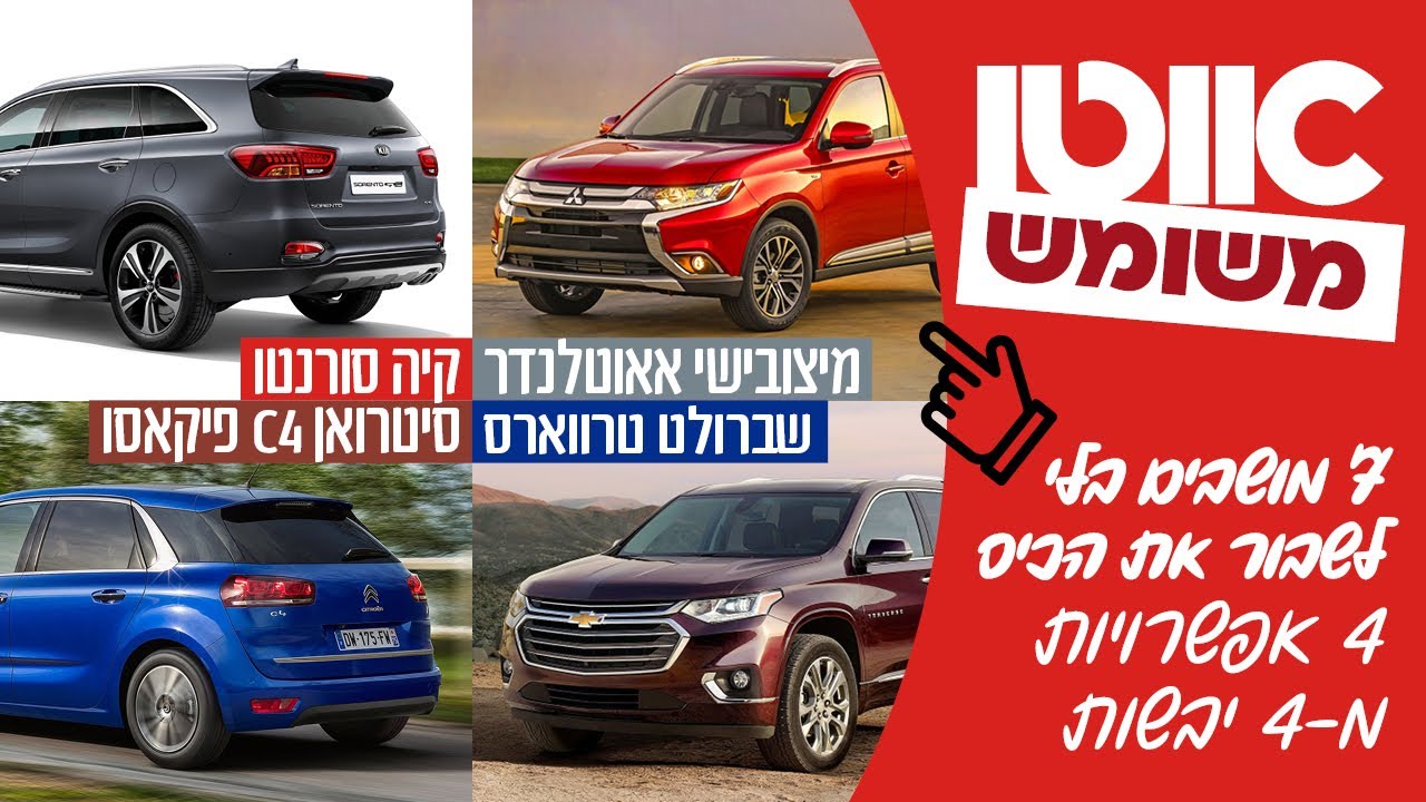 זקוקים לרכב שיניע את כל המשפחה? מתבלטים בין מיניוואן או ג'יפ? הנה 4 אופציות, כל אחת מיבשת אחרת לכל הפרטים, מחירים, אבזור ועוד כנסו לדף הדגם קיה סורנטו https://bit.ly/3VNRLZd מיצובישי אאוטלנדר https://bit.ly/3s4KQNu שברולט טרווארס https://bit.ly/3yRddCx סיטרואן C4 פיקאסו https://bit.ly/3T9wozv לייעוץ אובייקטיבי בחינם לפני קניה של כל סוגי הרכב היכנסו לאתר https://www.auto.co.il/?utm_source=Youtube&utm_medium=Video&utm_campaign=Youtube_desc&utm_content=defaults להרשמה לערוץ "אוטו TV" וסרטונים נוספים לחצו כאן https://www.youtube.com/c/autotv-israel?sub_confirmation=1 הגשה: גיא גיאור & איתי שטיינברג צילום ועריכה: עזרא רפאל