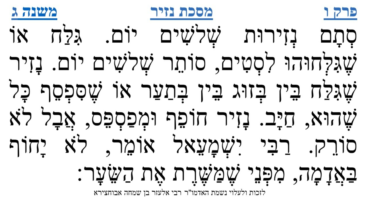 צפייה ישירה ב-YouTubeמסכת נזיר פרק ו משנה ג