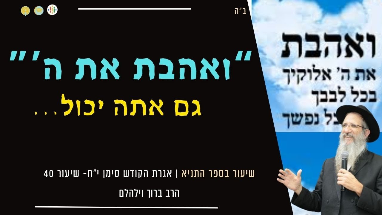 #הרב_ברוך_וילהלם #אהבה בשיעור הנוכחי נלמד על 2 בחינות באהבת ה'. אחד השייך רק אצל צדיקים והאחד שכל אחד צריך לפעול בעצמו לעורר הרגש לה' שיעור מספר 40 בלימוד חלק הרביעי שבספר התניא, המכונה 'אגרת הקודש'. #הרב_ברוך_וילהלם #תניא_אגרת_הקודש #עולם_הזה להאזנה בספוטיפיי https://did.li/RabbiWilhelm בפודקסטים https://pod.link/1698471792