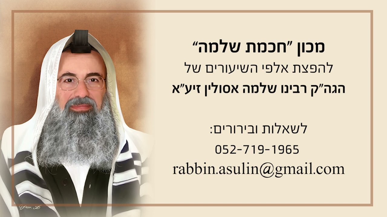 מכון "חכמת שלמה": להפצת שיעוריו של הגה"ק רבינו שלמה אסולין זיע"א * רבינו זיע"א - מחבר הספרים: שמן למאור, שלמי שמחה, שלמי חגיגה, מעיין גנים, דקדוקי תורה - ז' כרכים, כפל לשון ועוד עשרות ספרים בכת"י * תאריך פטירתו של רבינו זיע"א: ז' במרחשוון התשפ"ד, ומנוחתו כבוד בעיר אלעד * כל הזכויות שמורות ליוצאי חלציו שיחי' * לשמיעת שיעורי רבינו זיע"א באמצעות "קול הלשון": מס' ישיר - 073-295-1310 / 079-559-7335 בדף הערוץ מצורף קישור ישיר * לשמיעת שיעורי רבינו זיע"א באמצעות "טעמו וראו": בדף הערוץ מצורף קישור ישיר * תמונת רבינו זיע"א - באדיבות "יאיר בר סטודיו" - www.yairbarstudio.com * לבירורים נוספים: בנו הרב אליהו אסולין 054-847-4489 סהר רם 052-645-0113 הרב אליהו בר חן 052-719-1965 מייל - rabbin.asulin@gmail.com