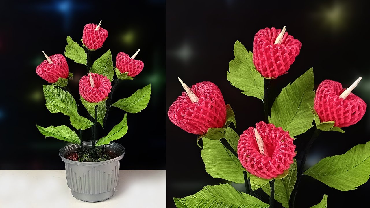 Creative Decoration Flowers Ideas from Fruit Nets | Flower from Apple Fruit Net | Fruit Foam Flower