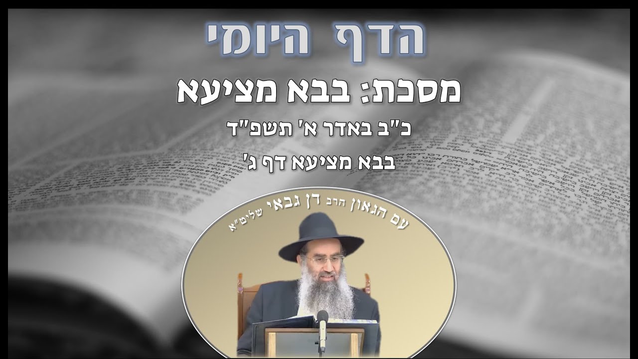 צפייה ישירה ב-YouTubeהדף היומי מסכת בבא מציעא דף ג כ''ב באדר א׳ תשפ''ד מפי מו''ר הרב דן גבאי שליט''א