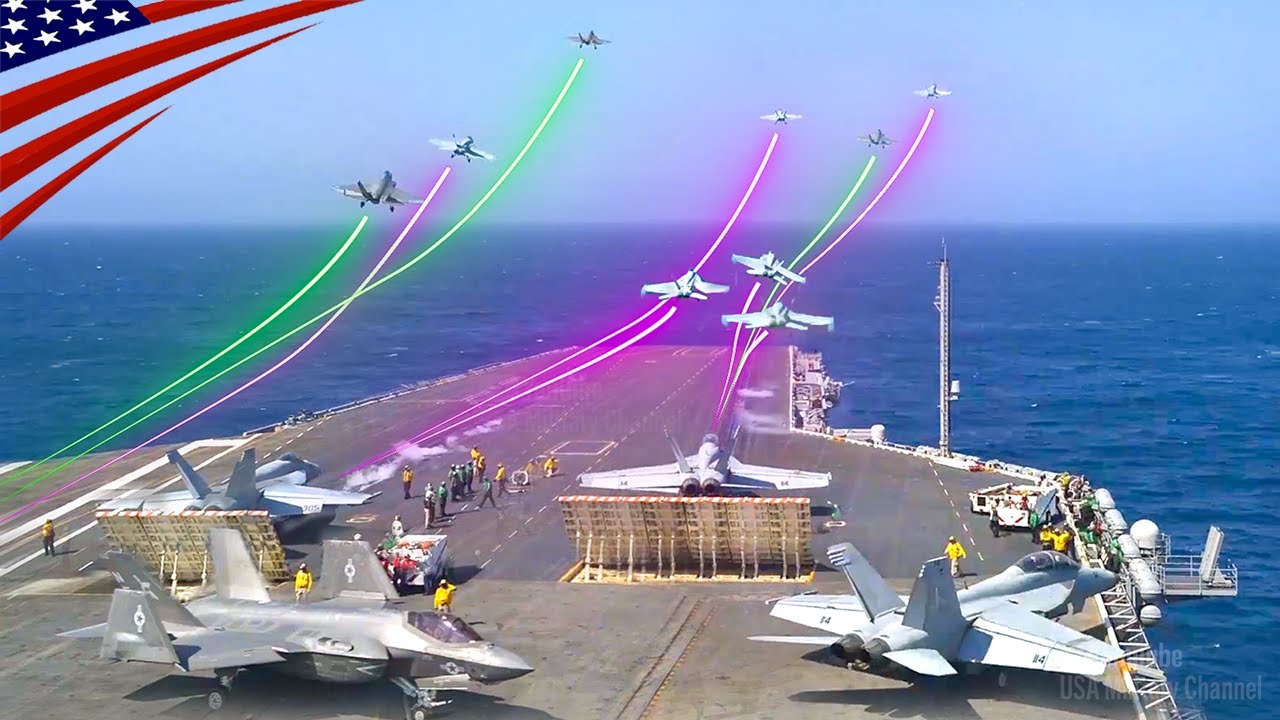 Spectacular Mass Launch of Fighter Jets: 6 Aircraft Carriers in Time-Lapse