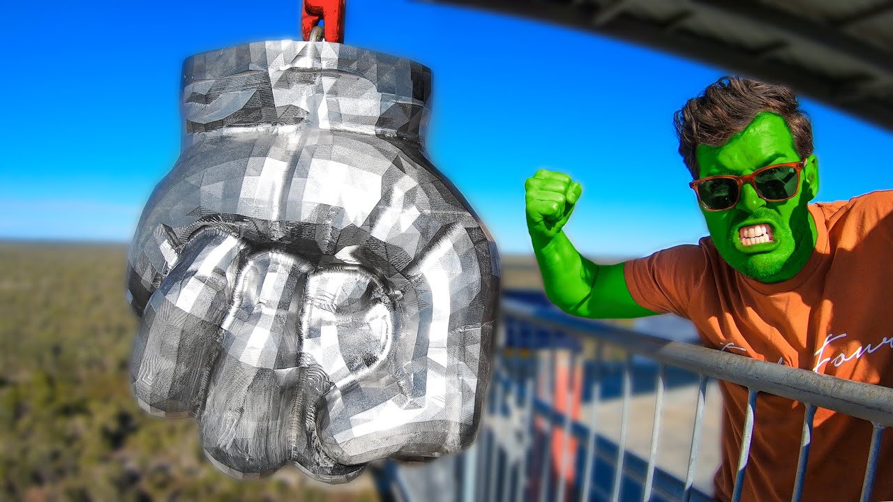 Smashing stuff with a Giant Steel Hulk Fist, how good! BUY NEW MERCH ➤ https://bit.ly/HRMerchStore BECOME A MEMBER ➤ and get exclusive perks like bonus weekly videos, monthly live streams + more! http://bit.ly/HRmemberships SUBSCRIBE ➤ http://bit.ly/SubHowRidiculous SOCIALS Instagram ➤ @HowRidiculous Facebook ➤ How Ridiculous / http://bit.ly/HRFacey Twitter ➤ @howridiculous TikTok ➤ @howridiculous What's the 44 Club? https://howridiculous.org/pages/44-club We are passionate about seeing children released from poverty and we would love you to consider sponsoring a child with Compassion. We visited our sponsor children in the Philippines and were blown away by the difference that child sponsorship can make. To find out more about sponsoring a child right now, check out: http://cmpsn.co/howridiculous What Slow Mo Camera Do We Use? We've got the The Chronos 1.4 which shoots 1500fps at 720p. Check it out here http://bit.ly/KrontechChronos A big thanks to the awesome crew at the Gravity Discovery Centre in Gingin for letting us use their 45m leaning tower for our own experiments. If you wanna head out there and check it out, it's not far from Perth. Western Australia: https://gravitycentre.com.au/leaning-tower/ For 44 Club fan mail or other items please send to: How Ridiculous PO Box 7045 Karawara WA 6152 Australia EMAIL US: All 44CLUB/fan email ➤ 44club@howridiculous.org "We'll Pin Ya" Submissions ➤ pinya@howridiculous.org Merchandise Questions ➤ merch@howridiculous.org Licensing/Media Inquiries ➤ licenses@howridiculous.org Business Inquiries ONLY ➤ management@howridiculous.org