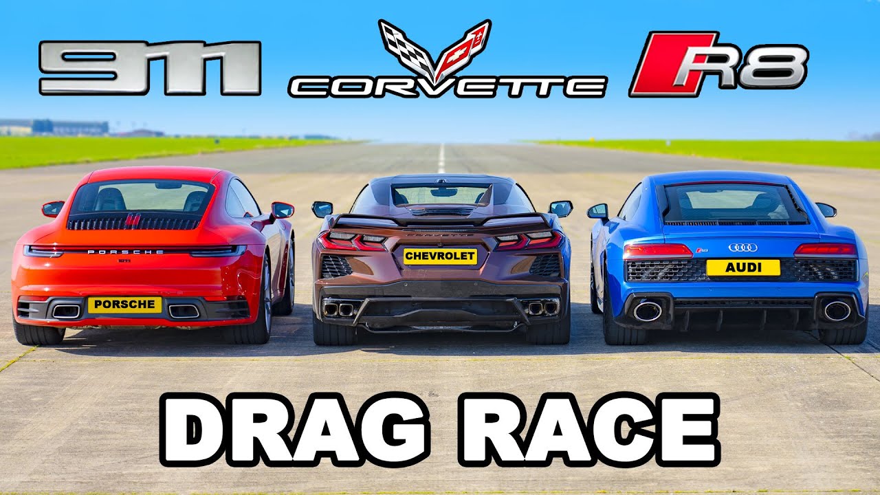 Audi R8 v Chevy Corvette v Porsche 911: DRAG RACE