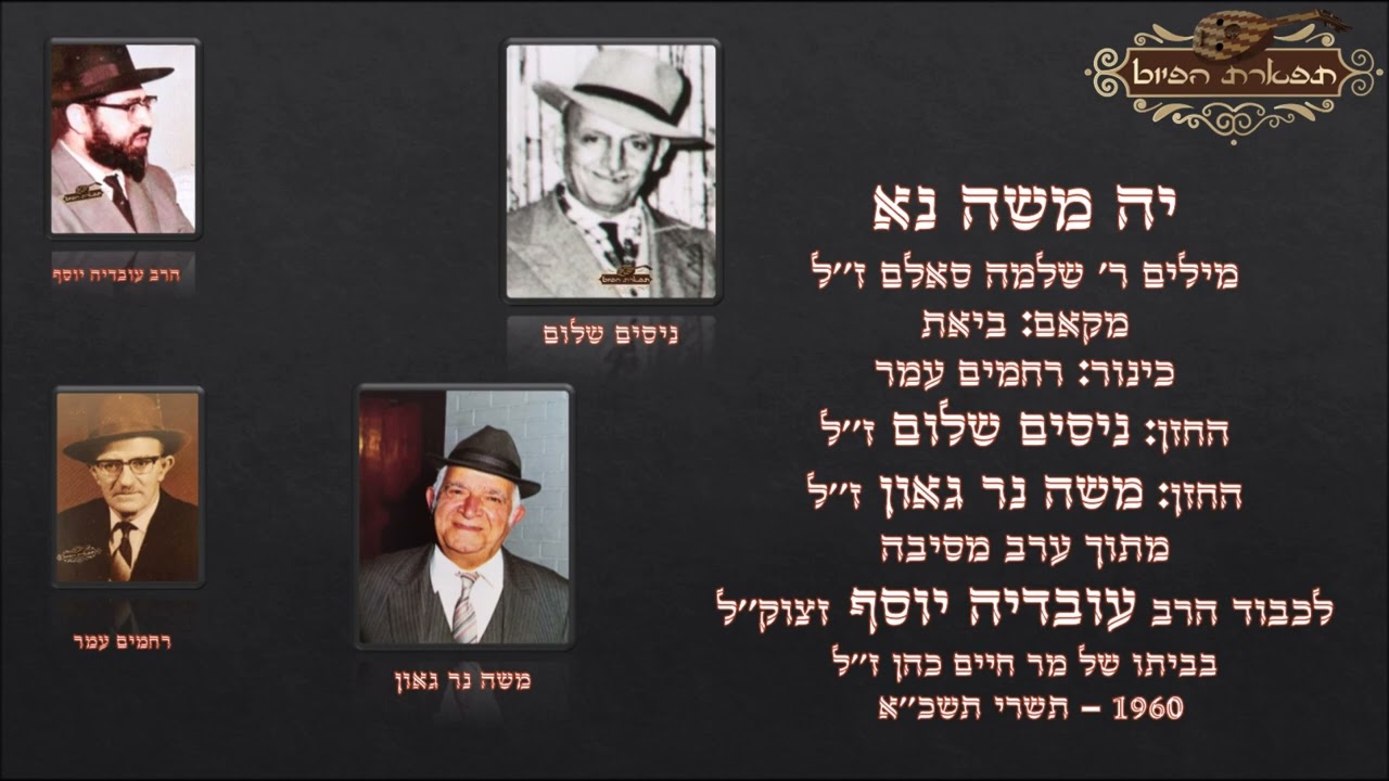 צפייה ישירה ב-YouTubeיה משה נא החזנים ניסים שלום משה נר גאון מוני טבעוני ערב לכבוד מרן עובדיה יוסף זצוק''ל 1960 מקאם ביא