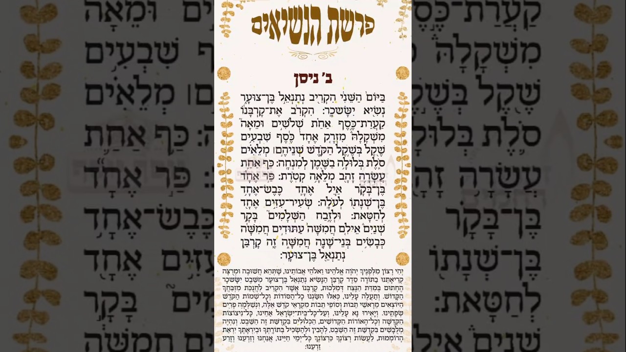 פרשת הנשיאים ליום ב' בניסן (31/03) - קריאה קצרה של דקות בודדות חבל לפספס💛 הפיצו🔥