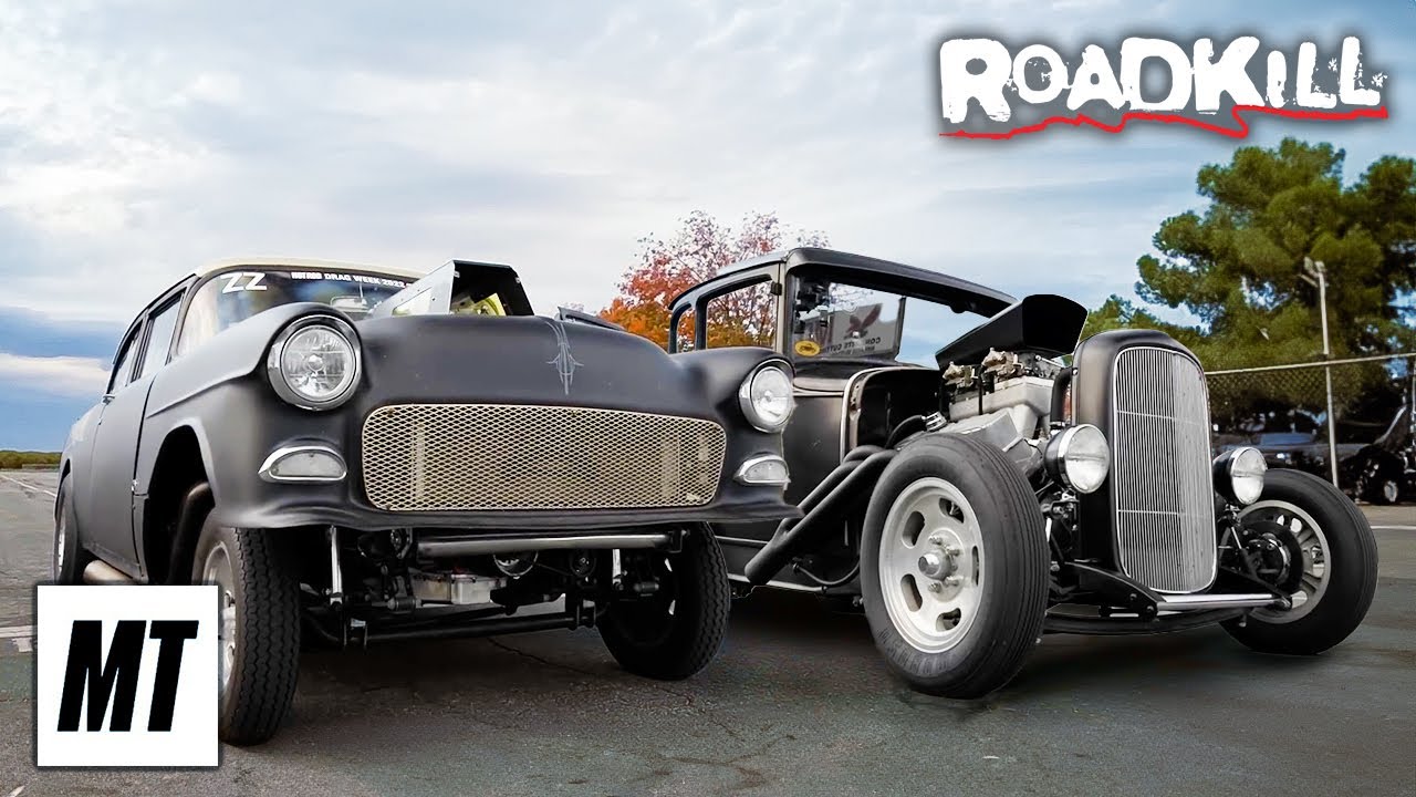 Finnegan and Freiburger go heads-up on the dragstrip in their eight-second project cars. After a road trip in the Blasphemi, the guys add a new supercharger and dyno tune the '55 Hemi-powered Chevy to over 1,000 hp, before seeing how its new tech holds up against Freiburger's old school, all-mechanical, big-block '31 Ford Model A.