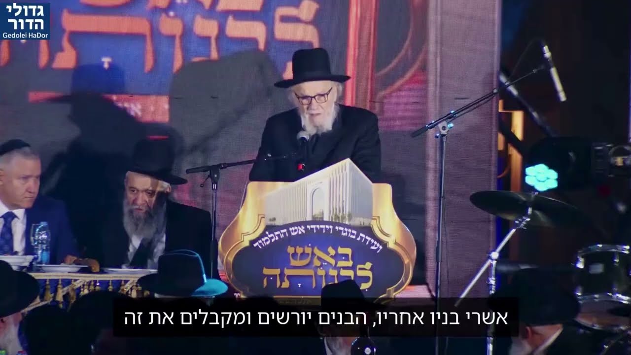 במעמד היסטורי ועוצמתי של הנחת אבן הפינה לישיבת "אש התלמוד" בדי-סיטי (אלעד), אל מול קהל של אלפי בני תורה נלהבים, נשא מנהיג הדור, מרן ראש הישיבה הגרמ"ה הירש שליט"א, את אחד הנאומים המטלטלים והמעצימים ביותר שנשמעו. צפו במשא המלא, בו יוצא הרב בזעקה אדירה נגד תחושת הקטנות והבינוניות, ומזכיר לכל בחור ובחור את הכוח העצום הטמון בו בזכות היותו "בן אברהם, יצחק ויעקב". בדבריו חוצבי הלהבות, מסביר מנהיג הדור כיצד כל יהודי ירש מאבותיו את היכולת לעמוד בניסיונות הגדולים ביותר, ומדוע חובה על כל אחד לשאוף לגדלות ולא להסתפק במועט. זהו לא רק נאום, אלא שיעור נצחי באמונה, שאיפה ומסירות נפש, מסר שכל יהודי, צעיר כמבוגר, חייב לשמוע ולקחת עמו לחיים. "You are not small - you are great!" 🤯 | The chilling message from the leader of the generation that resonated before thousands in D-City At the historic and powerful cornerstone laying ceremony for the "Esh HaTalmud" Yeshiva in D-City (Elad), before an audience of thousands of enthusiastic Torah scholars, the leader of the generation, Maran Rosh HaYeshiva HaGaon Rav Moshe Hillel Hirsch Shlit"a, delivered one of the most moving and empowering speeches ever heard. Watch the full address, in which the Rav issues a powerful cry against the feeling of smallness and mediocrity, reminding every young man of the immense power embedded within him by virtue of being a "son of Avraham, Yitzchak, and Yaakov." In his fiery words, the leader of the generation explains how every Jew has inherited from his forefathers the ability to withstand the greatest trials, and why it is incumbent upon everyone to strive for greatness and not settle for less. This is not just a speech, but an eternal lesson in faith, aspiration, and self-sacrifice—a message that every Jew, young and old, must hear a