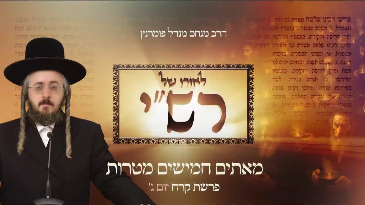 הרב מנחם מנדל פומרנץ | לאורו של רש"י - יום ג' פרשת קרח • מאתים חמישים מטרות •