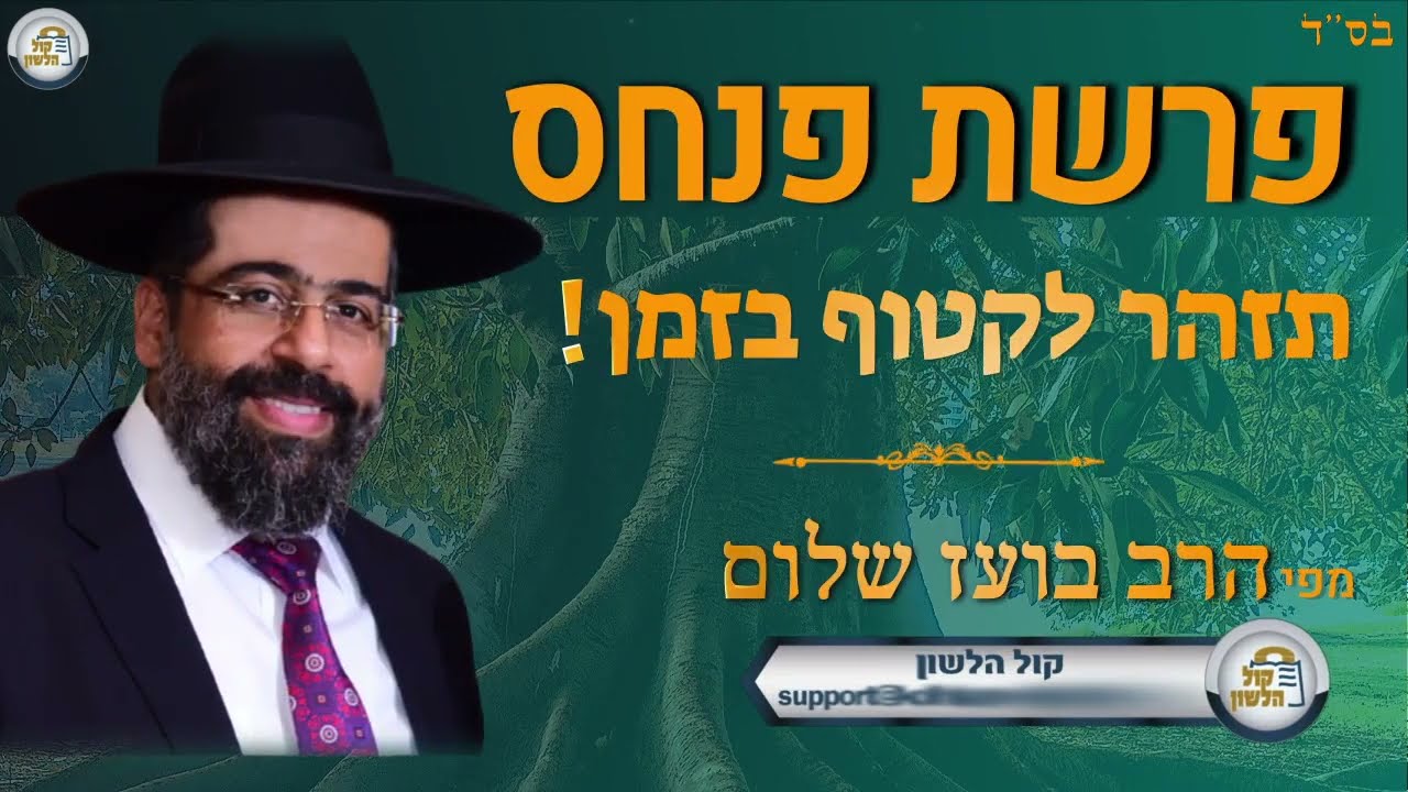 הרב בועז שלום - פרשת פנחס - תזהר לקטוף בזמן (תשפ"ב)