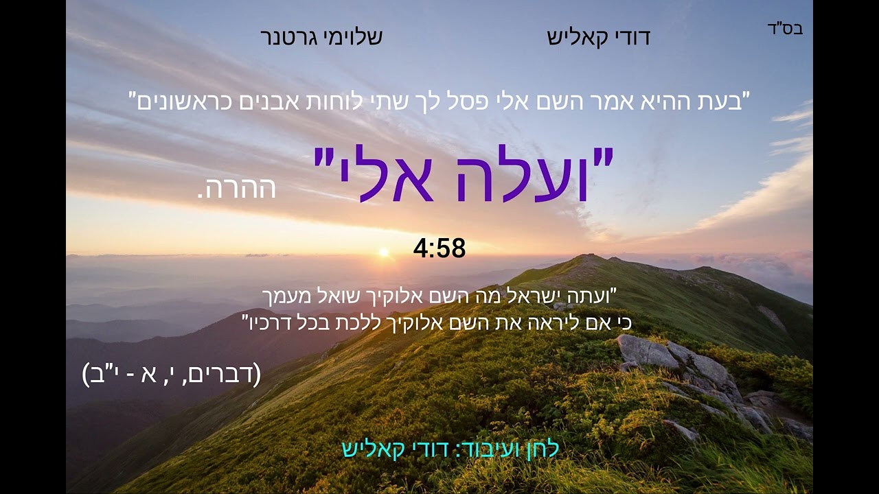 דודי קאליש ושלוימי גרטנר בָּעֵת הַהִוא אָמַר יְהוָה אֵלַי פְּסָל לְךָ שְׁנֵי לוּחֹת אֲבָנִים כָּרִאשֹׁנִים וַעֲלֵה אֵלַי הָהָרָה... וְעַתָּה יִשְׂרָאֵל מָה יְהוָה אֱלֹהֶיךָ שֹׁאֵל מֵעִמָּךְ כִּי אִם לְיִרְאָה אֶת יְהוָה אֱלֹהֶיךָ לָלֶכֶת בְּכָל דְּרָכָיו... 2013 - תשע"ג #דודי_קאליש #Dudi_kalish #שלוימי גרטנר