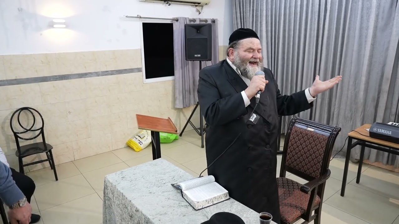 ר' מיכאל שטרייכר בשירת 'מה טובו' בקומזיץ בישיבה בברכפלד