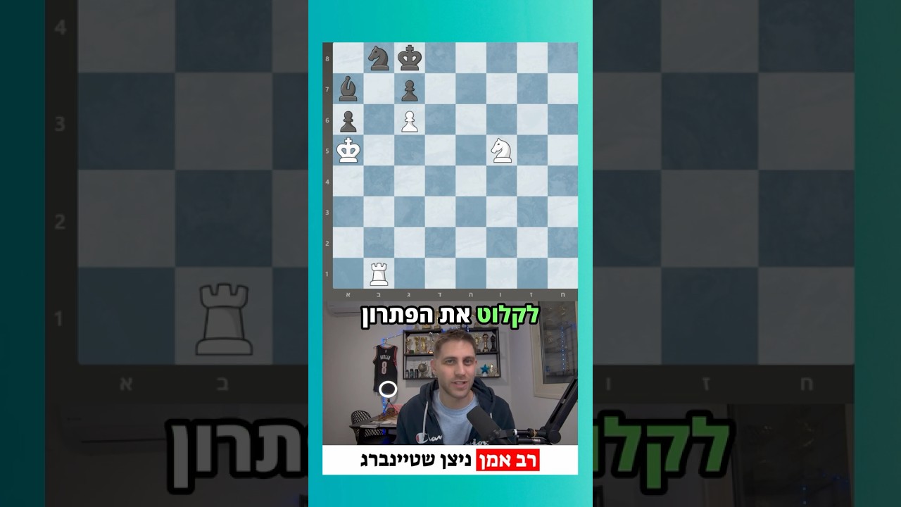 תרגיל מטורף בשחמט! שדורש הבנה, טקטיקה וחישוב יוצא מן הכלל! אם אם אתם רוצים להשתפר בשחמט, אלו בדיוק סוג התרגילים שאתם צריכים לפתור. תרגיל מיוחד מאוד שגורם לכם לפתוח את הראש ולחשוב על תבניות מחוץ לקופסא. בסרטון הזה תלמדו על תבנית חשובה בסיומים, ועד כמה חשוב המיקום של המלך בסיומי רגלים. נראה הקרבות מדהימות שמביאות לניצחון יוקרתי עבור הלבן! שבו, צפו ותהנו! מצטרפים לערוץ ומקבלים גישה להטבות: https://www.youtube.com/channel/UC-Me-DVb2wlGauHEbFdR79Q/join 🎓 לימוד שחמט בכיף לילדים: 🔹https://www.chessworld.io/ 🔹אייפון: https://apps.apple.com/us/app/chessworld-chess-for-kids/id1112656776 🔹אנדרואיד: https://play.google.com/store/apps/details?id=com.altermanchess.AltermanChessEdu 🎁 קוד קופון בלעדי: קבלו 20% הנחה על רכישת מנוי מתקדם באפליקציה הקוד: nitzan2025 ♟️ הירשמו ל-Outpost – הבית החדש לשחקני שחמט: https://outpostchess.com/?utm_source=YouTube&utm_medium=Nitzan אימייל לשליחת משחקים עבור נחש את מד הכושר ונחש את הערכת העמדה! nitzan.steinberg18@gmail.com 🎯 הצטרפו עכשיו לקבוצת הליצ'ס של הקהילה! 🏆 תחרויות, פרסים, ועוד הפתעות! 🔗 https://lichess.org/team/DR3Y5DS6 | סיסמה: 2025! 💙 נהנים מהתכנים שלי? אפשר לתמוך כאן: https://www.paypal.me/NitzanSteinbergChess 📱 הרשתות החברתיות שלי: 🔹 אינסטגרם: https://www.instagram.com/nizko_chess/ 🔹 טוויץ': https://www.twitch.tv/nitzansteinbergchess 🔹 פייסבוק: https://www.facebook.com/nitzan.steinberg 🔹 דיסקורד: https://discord.com/invite/t8Anrz5VpM 🔹טוויטר: https://twitter.com/SteinbergNitza1 🔹ערוץ יוטיוב באנגלית: https://www.youtube.com/@UCOPwWRP_SvWb7r6pnfs41Ww 🔹לינקדין: https://www.linkedin.com/in/nitzan-steinberg-a62112217/ 🔹טיקטוק: https://www.tiktok.com/@nitzansteinberg18 💬 קבוצת וואטסאפ פתוחה: 🔹https://chat.whatsapp.com/EdTr2ZCClu1HX9HHEpEhsx ♟️ פרופילים אישיים שחמט 🔹פידה: https://ratings.fide.com/profile/2801795 🔹בצ'ס קום: https://www.chess.com/member/nitzan_steinberg 🔹בליצ'ס: https://lichess.org/@/Nizi3