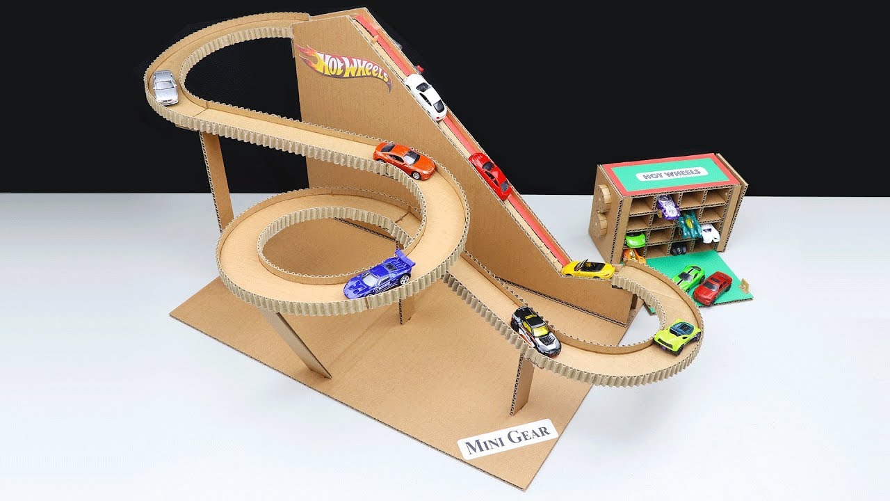 How to make hot wheels ultimate garage from cardboard. You can learn to make this project at home. I hope you like this idea. Thank you for watching!! Please subscribe to get more interesting videos: https://www.youtube.com/channel/UCNZMEiM-ZMYmEk2CG3mr1_Q?sub_confirmation=1 You Need: - Cardboard - DC motors - 9V battery - Electric wire and battery connector wire - Switch - Bicycle spoke - Ice-cream stick - BBQ bamboo sticks Cardboard Measurement: ==================== (cm = centimeter) 1cm x 54cm = 2 pieces 1,5cm x 54cm = 6 pieces 2cm x 2cm = 2 pieces 3cm x 26cm = 1 piece 3,2cm x 10cm = 2 pieces 3,2cm x 12cm = 1 piece 3,2cm x 13,5cm = 1 piece 3,2cm x 41,5cm = 1 piece 4,3cm x 54cm = 1 piece