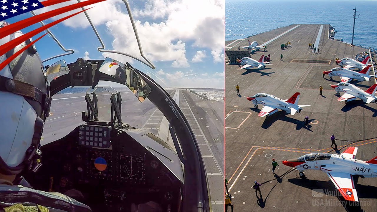 Cockpit footage of the T-45 Goshawk, a carrier-based trainer jet used to train future U.S. Naval Aviators during their flight training. Click here to Subscribe USA Military Channel: https://www.youtube.com/subscription_center?add_user=UsaMilitaryChannel The appearance of U.S. Department of Defense (DoD) visual information does not imply or constitute DoD endorsement.