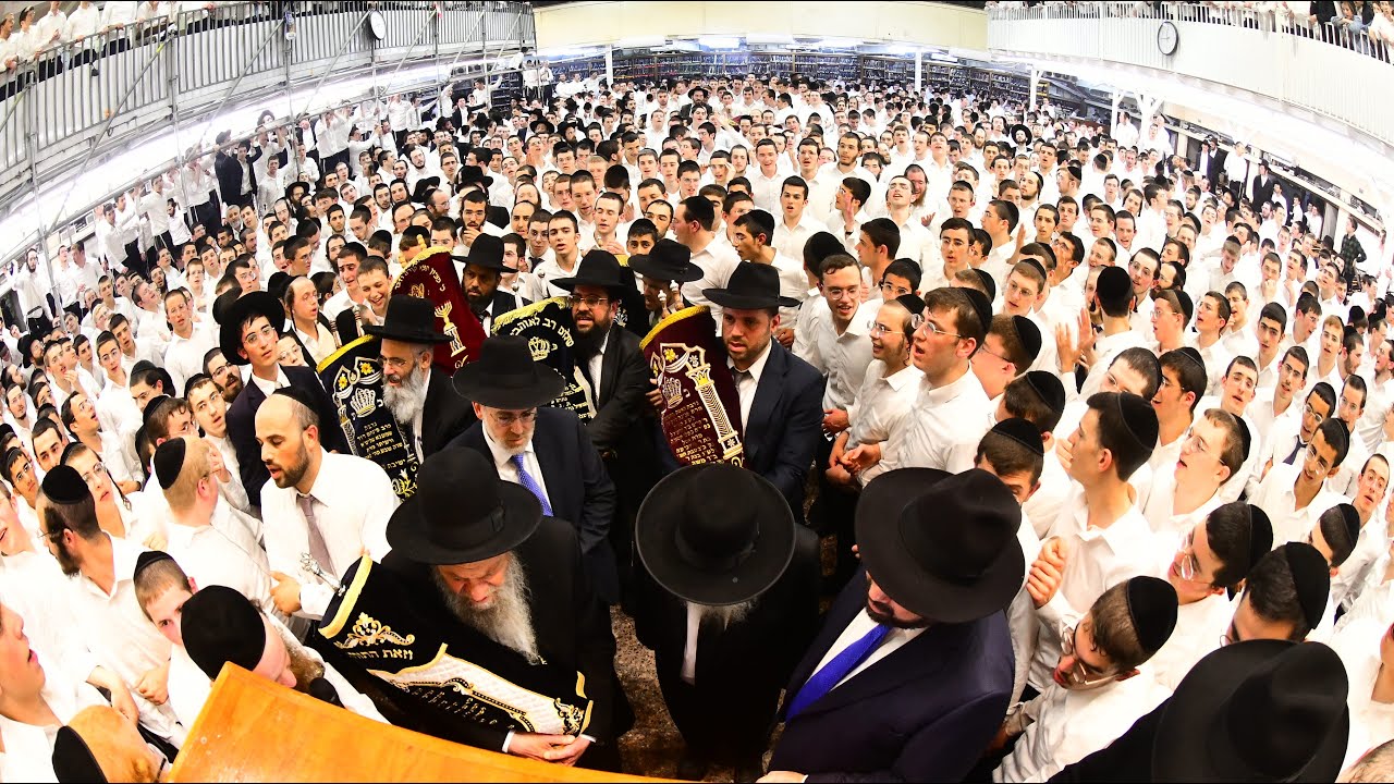 Thousands particpate in a Hachnosas Sefer Torah to the Ponavezh Yeshiva on Motzei Shavuos, written in memory of the Rosh Yeshiva, Hagaon HaRav Gershon Edelstein ZT’L. גבעת פוניבז' בבני ברק, נחסמה אמש (שלישי) לתנועה, כאשר אלפי בחורי ובוגרי הישיבה, נטלו חלק במעמד האדיר, מעמד 'הכנסת ספר תורה' לזכרו של ראש הישיבה הגאון רבי ירחמיאל גרשון אדלשטיין זצ"ל. לראשונה בהיסטוריה, נערכה סעודת המצווה קודם מעמד הכנסת ספר תורה, וזאת ע"פ החלטת ראשי הישיבה, לבל יבטלו את סדר הלימוד של סדר שלישי בישיבה, ואכן, טרם מעמד הכנסת ספר התורה הסבו הרבנים, הנגידים ובני המשפחה לסעודת מצווה, ושם נאמו כל אחד נאומו ברום גדלת ראש הישיבה ודבקותו בתורה הק' משוש חייו אשר הנחיל לדורות הבאים. כתיבת אותיות אחרונות נערכה בביתו של ראש הישיבה זצ"ל, ברחוב ראב"ד, והתהלוכה לכבודה של תורה, יצא מבית נשיא הישיבה הגאון רבי אליעזר כהנמן. בשיאו של התהלוכה הופיע ראש הישיבה הגאון רבי ברוך דב פוברסקי, שיצא במחול עם ספר התורה בחיקו, תוך שהוא פורץ בבכי של התרגשות. בהגיע הספר לכיכר הישיבה המשיכו הבחורים בריקודים, עד להכנסתה לתוככי ארון הקודש בהיכל הישיבה לקול אמירת המזמורים ע"י רבני הישיבה.
