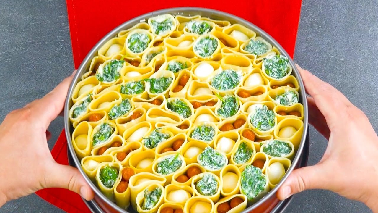 Honeycomb Cannelloni Bake ⬇️ SCRUMDIDDLYUMPTIOUS RECIPE BELOW ⬇️ One of our favorite, most underrated types of pasta is cannelloni. Those delicious cylindrical noodles can be stuffed any which way with meat, ricotta cheese, vegetables, you name it! Usually when guests order cannelloni in an Italian restaurant, they'll get served a delicious dish with 1 choice filling, but in this recipe we're taking things a step further. Our honeycomb pasta bake features cannelloni stuffed with 3 different fillings: classic spinach & ricotta, scrumptious sausage, and melt-in-your-mouth mozzarella. On top of the extra flavor, our cannelloni gets arranged in a stunning patten that looks just like a colorful, mouth-watering honeycomb made out of pasta! On top of all that, the whole dish gets smothered in a delicious homemade meat sauce and even more layers of cheese. This is one pasta dinner you don't want to miss out on! 📌 FULL RECIPE: https://www.scrumdiddlyumptious.com/stuffed-cannelloni-bake/ ➡️ Thanks for watching and don't forget to subscribe for a first-hand look at all our best recipes and cooking hacks: www.youtube.com/scrumdiddlyumptious ****************************************************** Yield: 1 Prep Time: 30 minutes Cooking Time: 45 minutes Difficulty Level: Moderate You'll Need: For the stuffed cannelloni: - 1 lb cannelloni pasta, cooked - ⅓ cup grated parmesan - 1 lb spinach, sautéed - 9 oz ricotta cheese - 10 oz cocktail sausages - 14 oz mozzarella pearls - olive oil for sautéing For the meat sauce: - 1 lb ground beef - 1 onion, diced - 2 garlic cloves, minced - 1 tbsp tomato paste - 2½ cups diced tomatoes - 3 bay leaves - 1 tbsp chopped thyme - 1 tbsp chopped rosemary - 2 tbsp sugar - salt & pepper to taste For the topping: - 2 cups shredded mozzarella - cherry tomatoes + chopped parsley for the garnish Here's How: 1. For the filling, sauté the spinach in some olive oil until it shrinks down significantly, then season it with salt & pepper and let it cool. Once the spinach has cooled, use your hands to squeeze out any excess liquid, then stir it together with the ricotta cheese. Transfer the spinach & ricotta filling to a piping bag. 2. For the meat sauce, fry the ground beef in some olive oil until it starts to brown, then add in the diced onions, minced garlic, and tomato paste. After everything has cooked briefly, add in the diced tomatoes, sugar, and herbs and bring the sauce to a gentle simmer. Let the meat sauce simmer for about 30 minutes and season with salt & pepper. 3. Heat a large pot filled with salted water on the stove. Cook the cannelloni for 3 minutes in the boiling water, then drain the noodles and run them under cold water to cool them off. Once the cannelloni noodles have been drained and cooled, return them to the large pot and stir in the grated parmesan. 4. Cut the cannelloni noodles in half and position them upright on a clean work surface. 5. Pipe the spinach & ricotta filling into ⅓ of the halved cannelloni noodles, insert 2 cocktail sausages into another ⅓, and fill the final ⅓ with 2–3 mozzarella pearls each. 6. Grease an 11-inch springform pan and stand it up on its side. Fill the springform pan with the 3 different flavors of stuffed cannelloni, then return the springform pan to its original position. 7. Pour the homemade meat sauce over the stuffed cannelloni and sprinkle shredded mozzarella on top. Transfer the springform pan to the oven and bake at 350°F for 45 minutes. 8. Once the honeycomb cannelloni bake has finished cooking, take it out of the oven and remove the ring from the springform pan. Garnish the honeycomb cannelloni bake with cherry tomatoes and chopped parsley. Even before you slice into it, this honeycomb cannelloni bake looks stunning, between all of the pasta, cheese, and fresh toppings. And then it gets even better – the 3 different fillings mix together perfectly from your first bite, right down to your last! Get the recipe for the Stuffed Snack Pyramid With 3 Fillings featured in the bonus video: https://youtu.be/wDsPZovJ9pc ****************************************************** Do you want to see more content like this? Scrumdiddlyumptious brings you unique recipes & cooking hacks every day, so be sure to subscribe, like, and follow us for a first-hand look at new videos that you can share with your family & friends! 💚 YouTube: https://www.youtube.com/scrumdiddlyumptious 💚 Facebook: https://www.facebook.com/scrumdiddlyumptiouscom 💚 Instagram: https://www.instagram.com/scrumdiddlyumptious_recipes 💚 Pinterest: https://www.pinterest.com/scrumdiddlyumptious 💚 Website: https://www.scrumdiddlyumptious.com ******************************************************