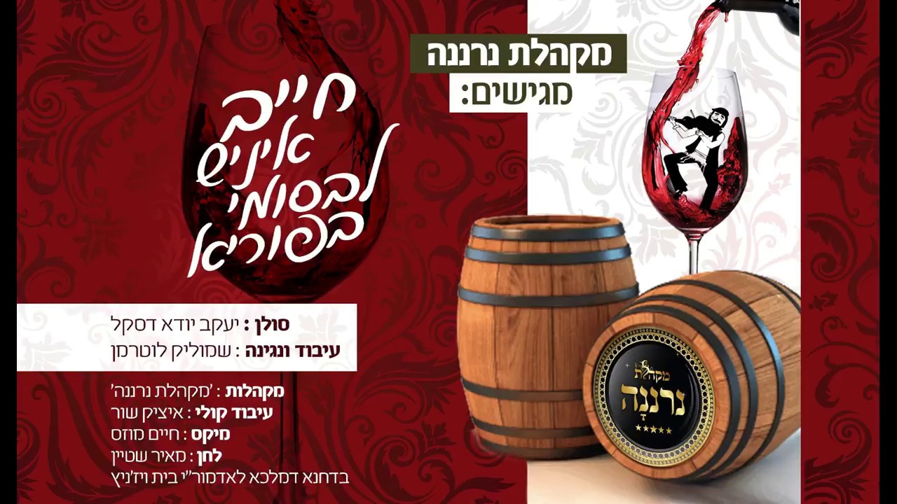 הנה זה מגיע : השיר של פורים תשע"ח "חייב איניש לבסומי" עם נרננה דסקל ולוטרמן, שיר חסידי מקפיץ ואנרגטי במיוחד שהופק ומבוצע ע"י מקהלת "נרננה" בוואקליות מרשימה , ועמם הבעל מנגן החסידי יעקב יודא דסקל שהביא את הטאצ' והאנרגיות המיוחדות, והקלידן המוכשר שמולק לוטרמן שעיבד וניגן בכשרון מיוחד את השיר, הכל התחיל כשמנהלי מקהלת "נרננה" שמעו הקלטה של השיר הזה מתוך סעודת ראש חודש אדר אצל האדמו"ר מויזניץ שליט"א מבוצע בסגנון פורימי ע"י המלחין עצמו, וזיהו מיד את הפוטנציאל האדיר של הניגון , ומשם הדרך לאולפן הייתה קצרה והתוצאה המדהימה לפניכם, ללא ספק השיר הזה יכנס לפליליסט של שירי פורים די בכל אתר ואתר, את השיר הזה נשמע השנה בסייעתא דשמיא בוקע מכל טנדר של התת"ניקים ומכל בית יהודי בשמחת הפורים, סולן : יעקב יודא דסקל מקהלות והפקה : מקהלת "נרננה" עיבוד ונגינה : שמוליק לוטרמן עיבוד קולי : יצחק שור מיקס : חיים מוזס לחן : מאיר שטיין - בדחנא דמלכא לאדמור"י בית ויזניץ