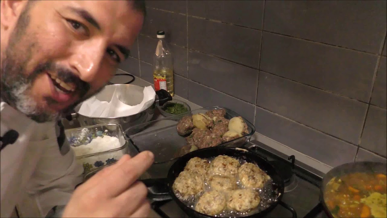 1 קילו גר בשר טחון , 20 תחתיות ארטישוק ,2 בצלים בינוני ,10 שיני שום ,צרור שמיר ,צרור פטרוזיליה ,צרור סלרי ,2 גזרים בינוני ,1 כפית רסל חנות ,2 כפיות מלח דק ,1 כפית פלפל שחור טחון ,1 כפית פלפל שחור גרוס ,1 כפית כורכום ,1 כפית כמון ,1 כף לימון כבוש או לימון רגיל 1 חתוך לפרוסות דקות ,7כוסות מים שמן קמח 4 ביצים מעט קונפלור ,
