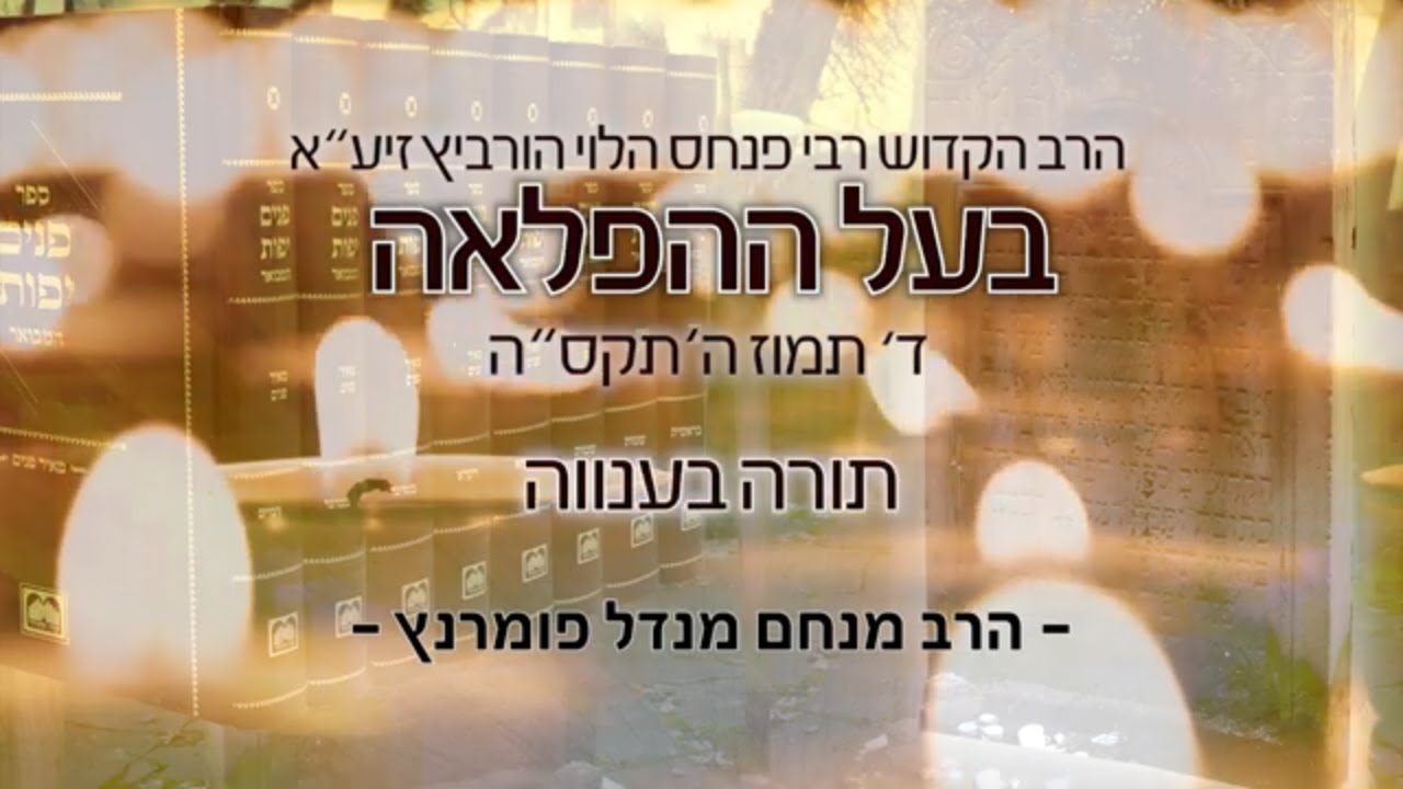 • תורה בענווה • הרב מנחם מנדל פומרנץ הילולות צדיקים הרה"ק רבי פנחס הלוי הורביץ - בעל ההפלאה זיע"א ד' תמוז ה'תקס"ה