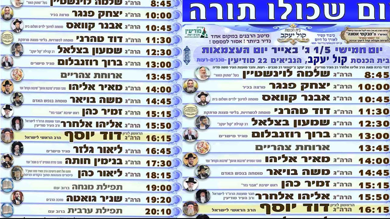 יום שכולו תורה הגדול במדינה עם מיטב הרבנים והדרשים בקול יעקב במודיעין