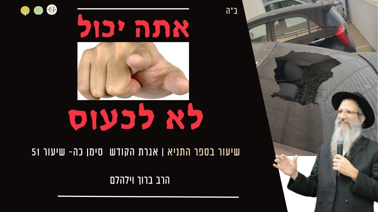 #הרב_ברוך_וילהלם #כעס בשיעור הנוכחי נקבל כלים מעשיים שיעזרו לנו לשלוט על מידת הכעס. שיעור מספר 51 בלימוד חלק הרביעי שבספר התניא, המכונה 'אגרת הקודש'. #הרב_ברוך_וילהלם #תניא_אגרת_הקודש #תפילה להאזנה בספוטיפיי https://did.li/RabbiWilhelm בפודקסטים https://pod.link/1698471792