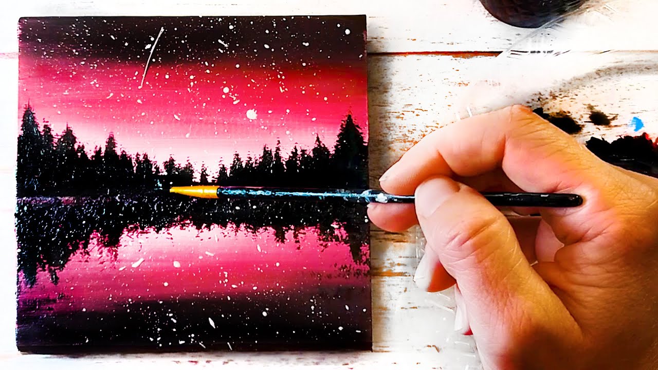 איך לצייר באקרליק שקיעה מטורפת בורוד זוהר- בלי ניסיון בציור! אקריליק למתחילים- כל אחד יכול! 🎨 2020