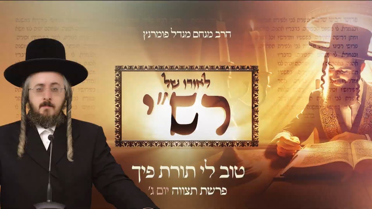 הרב מנחם מנדל פומרנץ | לאורו של רש"י - יום ג' פרשת תצוה • טוב לי תורת פיך •