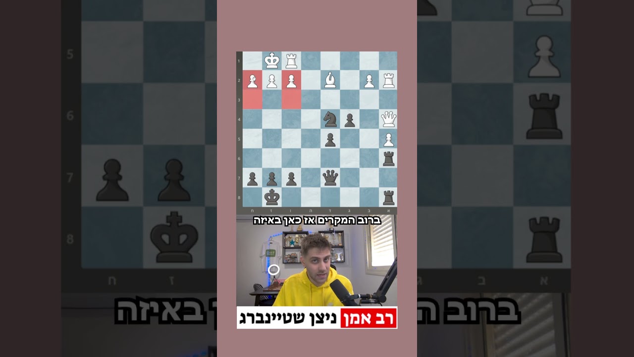 תבנית שחמט חשובה ביותר! איך פורצים את ההגנה של היריב? באיזה ערוגות/משבצות נשתמש? ואיך עושים את זה במשחק אמיתי? הכל בסרטון 1! מצטרפים לערוץ ומקבלים גישה להטבות: https://www.youtube.com/channel/UC-Me-DVb2wlGauHEbFdR79Q/join 🎓 לימוד שחמט בכיף לילדים: 🔹https://www.chessworld.io/ 🔹אייפון: https://apps.apple.com/us/app/chessworld-chess-for-kids/id1112656776 🔹אנדרואיד: https://play.google.com/store/apps/details?id=com.altermanchess.AltermanChessEdu 🎁 קוד קופון בלעדי: קבלו 20% הנחה על רכישת מנוי מתקדם באפליקציה הקוד: nitzan2025 ,בתוקף עד ה־30.9 הירשמו בחינם לאתר שידהים אותכם! באמצעותו תוכלו ללמוד פתיחות, לשנן וריאנטים, לשפר את הזיכרון ולהשתפר בשחמט ופשוט לנצח. https://www.chessshare.com/# ♟️ הירשמו ל-Outpost – הבית החדש לשחקני שחמט: https://outpostchess.com/?utm_source=YouTube&utm_medium=Nitzan אימייל לשליחת משחקים עבור נחש את מד הכושר ונחש את הערכת העמדה! nitzan.steinberg18@gmail.com 🎯 הצטרפו עכשיו לקבוצת הליצ'ס של הקהילה! 🏆 תחרויות, פרסים, ועוד הפתעות! 🔗 https://lichess.org/team/DR3Y5DS6 | סיסמה: 2025! 💙 נהנים מהתכנים שלי? אפשר לתמוך כאן: https://www.paypal.me/NitzanSteinbergChess 📱 הרשתות החברתיות שלי: 🔹 אינסטגרם: https://www.instagram.com/nitzan_steinberg_/ 🔹 טוויץ': https://www.twitch.tv/nitzansteinbergchess 🔹 פייסבוק: https://www.facebook.com/nitzan.steinberg 🔹 דיסקורד: https://discord.com/invite/t8Anrz5VpM 🔹טוויטר: https://twitter.com/SteinbergNitza1 🔹ערוץ יוטיוב באנגלית: https://www.youtube.com/@UCOPwWRP_SvWb7r6pnfs41Ww 🔹לינקדין: https://www.linkedin.com/in/nitzan-steinberg-a62112217/ 🔹טיקטוק: https://www.tiktok.com/@nitzansteinberg18 💬 קבוצת וואטסאפ פתוחה: 🔹https://chat.whatsapp.com/EdTr2ZCClu1HX9HHEpEhsx ♟️ פרופילים אישיים שחמט 🔹פידה: https://ratings.fide.com/profile/2801795 🔹בצ'ס קום: https://www.chess.com/member/nitzan_steinberg 🔹בליצ'ס: https://lichess.org/@/Nizi3