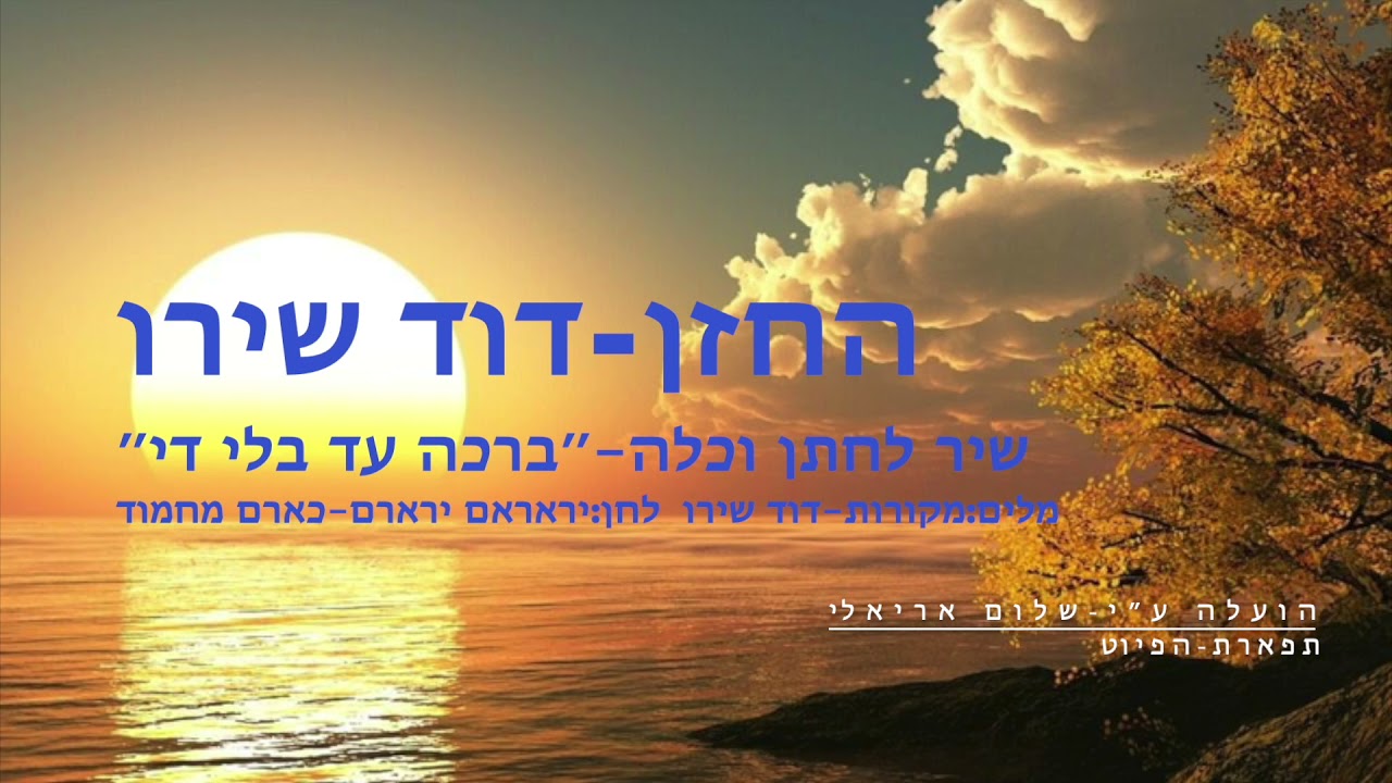 ברכה עד בלי די מלים:מקורות-דוד שירו לחן:יאראראם-כרים מחמוד נגנים: אריאל כהן,נתנאל יצחקוב, מאדי בגדדי והאני אסעד. קולות-מנחם מוסטקי,רחמים שירו,דוד שירו, הילדים אברהם נקאש ופרדי ג׳מאל. עוד ישמע בערי יהודה, קול ששון וקול שמחה, קול חתן וקול כלה. קדש בשמחה, את אשת נעוריך, תהי בביתך כגפן פוריה, בזה הזמן ביום המאושר, ברכת ה׳, עד בלי די, בלי די עד בלי די. עוד ישמע ,,,, סביב שולחנך, הם כתר לראשך, בנים ובנות בני קיימא, בעמל תורה, ובדרך ישרה, קרנם ירום עד בלי די, בלי די עד בלי די. עוד ישמע,,, חבר יקר! הירשם כמנוי לערוץ תפארת הפיוט הפעל את האפשרות 'כל ההתראות' (לחץ על הפעמן בצד שמאל) בדף הראשי תהנה ותתעדכן ממיגוון סירטונים בעולם הפיוט. לחץ על הקישור הבא.. https://www.youtube.com/user/sha91031