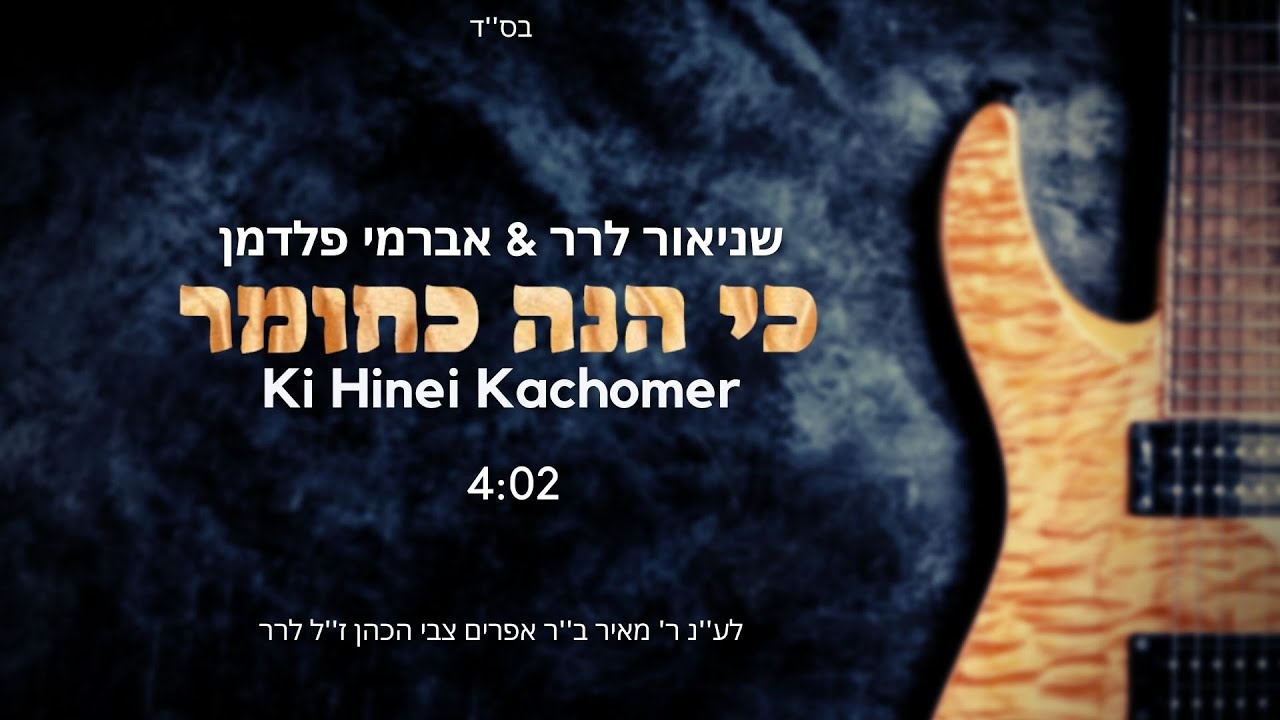שניאור לרר (קלידים) ואברמי פלדמן (גיטרה) מגישים ביצוע מיוחד לניגון כי הנה כחומר. הניגון היה צריך לעלות לפני ראש השנה, בעקבות כמה עיכובים הוא עלה עכשיו. את הניגון חיבר ר' שולם חריטונוב שהיה בעל מנגן גדול. האזנה נעימה! הירשמו לערוץ: https://did.li/subscribe ----------- קרדיטים: עריכת וידיאו: שניאור לרר אלמנטים בסרטון: Canva הפצה דיגיטלית: https://distrokid.com/vip/seven/2761781 שניאור מנגן על פסנתר ואורגן כבר יותר מ-8 שנים. התכנים המועלים לערוץ הם ניגוני חב''ד, ניגונים לתינוקות, פסנתר ועוד... שניאור מנגן באירועים כמו בר מצוות, הופעות ואירועי יוקרה. הנגינה על פסנתר או אורגן ומלווה את האירוע בצלילים מיוחדים ויוצרי אווירה מיוחדת. ליצירת קשר והזמנה לאירועים: 055-938-1177 #שניאור_לרר #ניגוני_חבד