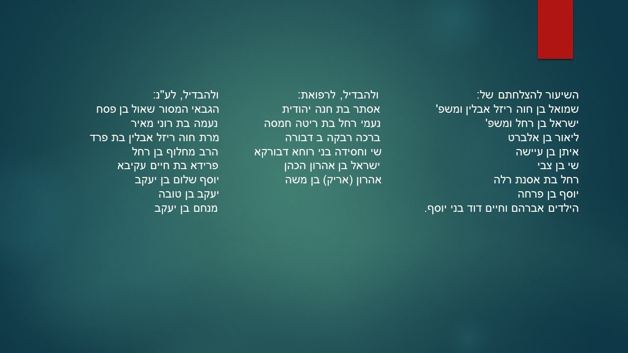 הרב זאב פרידמן פרשת וישלח תשפ"ו - לע"נ חנה באשה בת הרב ישראל יהודה הכהן
