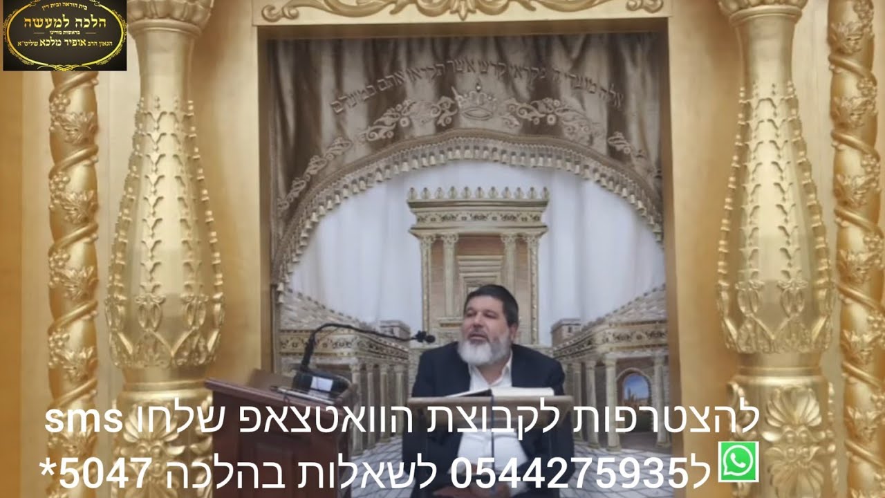 הצטרפו לערוץ שלנו ביוטיוב https://youtube.com/channelUCiT6KgOE1IDJ2XHE23Zk2Cg הצטרפו לשיעורי הרב אופיר מלכא בכול הארץ... ימים ראשון שני ושלישי: ירושלים ישיבת אור החיים 19:50 רחוב עזרא 1 ימי רביעי: 20:30 ברחבי הארץ פרסום בהתאם 22:10 בני ברק בי"הכ יביע אומר רח' עוזיאל 41 ימי חמישי : 17:45 ירושלים כולל בקרית נוער בית וגן שער 9 יום שישי:(פעם בשבועיים ) קרית אונו מאחורי הקניון בשעה 11:00 קרית גת ביה"כ אור החיים ענתות 3 11:00 כל שבוע אשדוד ביה"כ החיד"א 12:30 שבת: לאחר תפילת שחרית ירושלים בית הכנסת שערי ניסים רחוב שאול המלך 40 מענה הלכתי על ידי הרב שליט"א מדי יום שני בין 17:00-18:30 5047* שלוחה 1 כל יום רביעי בשידור חי שיעורו של הרב אופיר מלכא מיביע אומר בשעה 22:15 !!! קישורים 📲 לצפיה בשידור חי בקול הלשון https://www.kolhalashon.com/New/Live/LiveShiurimTree.aspx?RavID=1810&ShowVideo=True 📲לצפיה בשידור חי ביוטיוב https://www.youtube.com/@user-td5hq9zj1x 📲לצפיה ביוטיוב בטלפון הכשר בחרו מס 71 http://wiki.netfree.link/wiki/ערוצים_ביוטיוב_הפתוחים_בנטפרי
