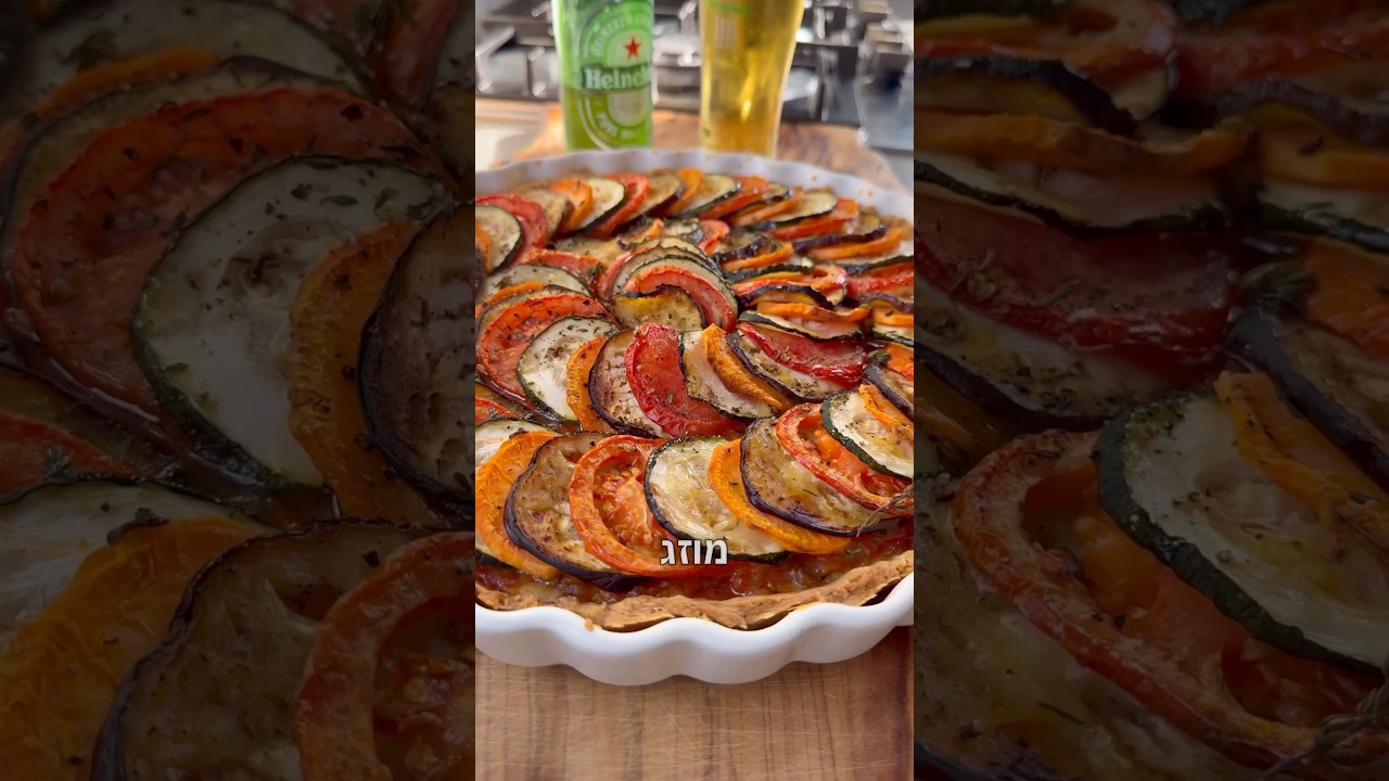 רטטוי פאי – צרפת נגד אנגליה, פריז סן ז’רמן מול מנצ’סטר סיטי! זה המשחק המרכזי וסידרנו לכם מתכון צרחות תרתי משמעבשיתוף נותנת החסות הרשמית היינקן מקווים שתהנו לבצק: 300 גרם קמח 160 גרם חמאה קרה חתוכה לקוביות 2 ביצה טרופה כפית מלח כפית סוכר לרוטב: 3 פלפלים בצבעים 4 עגבניות 1 בצל 2 גזרים 5-6 גבעולי סלרי 2 שיני שום כוס בירה היינקן כפית מלח, כפית אורגנו וכפית פלפל שחור כוס מחית של עגבניות קצוצות במיץ 10 עלי בזיליקום טרי לירקות: 1 קישוא 1 בטטה 1 עגבניה 1 חציל מלח, פלפל וטימין טרי שמן זית אופן ההכנה: לבצק: מכניסים למעבד מזון את הקמח מלח וסוכר ומערבבים מוסיפים את החמאה ולוחצים פולסים(אפשר גם במיקסר עם וו גיטרה) מוסיפים אצת הביצה ונותניןם עוד כמה פולסים ליצירת בצק פירורי מורידים לשיש את הפירורים ומאחדים לכדור, עוטפים בניילון נצמד ושמים במקרר כשעה מוציאים מהמקרר, מרדדים בעזרת 2 ניירות אפייה לגודל הקוטר של תבנית הפאי, מניחים את הבצק ומורידים את השוליים עם סכין, יוצרים חורים עם מזלג, שמים נייר אפייה ועליו חומוס גרגירים או שעועית אופים 180 מעלות 25 דקות ומוציאים לרוטב: שורפים שלושה פלפלים בצבעים, מכסים בניילון נצמד ולאחר כמה דק מקלפים וחותכים. לוקחים 4 עגבניות, חורצים איקס למעלה וחולטים במים חמים, לאחר מכן מקלפים וחותכים לקוביות. במחבת או סיר שטוח שמים מעט שמן זית וחמאה, מטגנים בצל אחד קצוץ, 2 גזרים קצוצים דק, 5-6 גבעולי סלרי קצוצים ו-2 שיני שום פרוס. מטגנים כמה דקות ואז מוזגים פנימה כוס בירה היינקן. נותנים לבירה להתאדות, מוסיפים את העגבניות והפלפלים הקלויים מתבלים בכפית מלח, כפית אורגנו וכפית פלפל שחור מוסיפים כוס מחית של עגבניות קצוצות במיץ מכסים ומבשלים כ-25 דקות- אש בינונית. לאחר מכן מעבירים את כל הרוטב למעבד מזון עם 10 עלי בזיליקום טרי ונותנים 3-4 פולסים (אפשר גם עם מוט סטיק).. משטחים את הרוטב על תחתית הפאי לירקות- שמנו , בטטה, זוקיני, עגבניה וחציל מה שחשוב שהירקות יהיו באותו הגודל והצורה לכן תבחרו בקפידה ולחתוך עם מנדולינה / מעבד מזון כדי שהפרוסות יהיו דקיקות ויפות.. מסדרים בתבנית שתי וערב את כל הירקות כמו בסרטון מתבלים במלח, פלפל וטימין טרי. זולפים שמן זית, מכסים ומכניסים לתנור ל40 דקות 170 מעלות בתאבון בשיתוף @ heineken.0.0 @itayedri #רטטוי #רטטויפאי#מתכונים #יאבלולושמבלולו