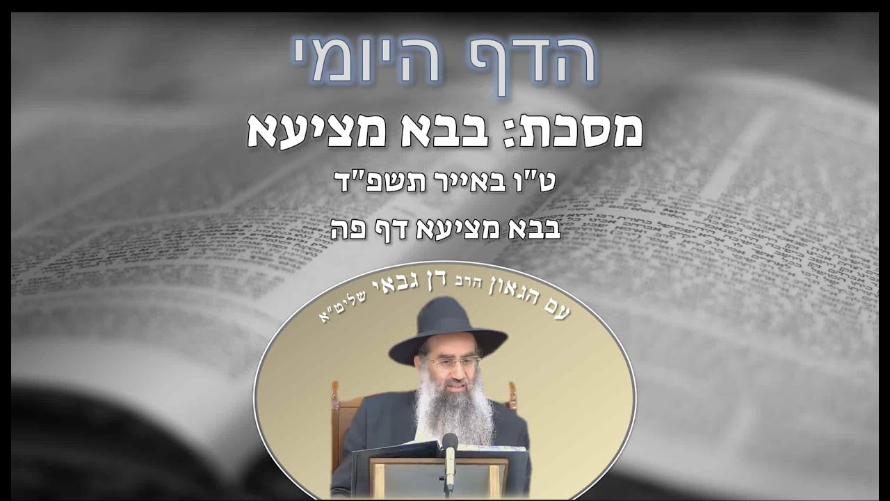 צפייה ישירה ב-YouTubeהדף היומי מסכת בבא מציעא דף פה ט"ו אייר תשפ"ד מפי מו"ר הרב דן גבאי שליט"א