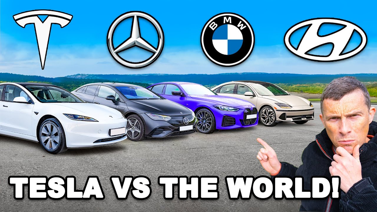 There’s no denying that the Tesla Model 3 is one of the most popular all-electric saloons in the world. No matter where you are in the world, chances are it won’t take long until you spot a Model 3 driving by - and an all-new edition is due out in early 2024! The question is, will this all-new Model 3 be able to keep hold of its crown? Or could some other all-electric saloons take its place, such as the IONIQ 6, Mercedes EQE or BMW i4? Well to start off, let’s check out the design of these four EVs. Starting with the new Model 3, there are slimmer headlights up front as well as a big central vent in the bumper. There are new alloy wheel designs as well as some specially designed tyres for the car, and around the back, there’s a set of new taillights and an updated bumper. On the inside, there are a number of new features. The seats now come with ventilation, and there’s an LED light bar that runs along the side doors and across the dash. The stalks have also been removed from the steering wheel, with indicator buttons now added to it. Next up we have the Hyundai. The Ioniq 6 has a sleek, swooping body design, coupled with dual spoilers at the back. It comes with a pixelated light design similar to the 5, although it also has a bit of a strange rear bumper design. The sleek looks continue around the front, and all-in-all it’s pretty smart! On the inside the design is pretty similar to the Ioniq 5. There are good quality materials across the dash, and a large infotainment & digital dial dual screen mounted to the middle of it. Next up we have the EQE. The outside looks pretty much identical to the all-electric EQS, but it’s just been made a bit smaller. There aren’t any smart creases on the outside either. Thankfully the interior is much more striking. There are two interior styles to choose from, and both come with an absolutely huge infotainment screen - one of these stretches across the entire dash! The digital dial screens are super smart, and there are soft-touch materials throughout the entire cabin. Then finally we have the BMW i4, it looks seriously impressive! It comes with the large ‘grille’ design at the front, side skirts along the side, and at the back, you'll find sculptured tail lights and a mini bootlip spoiler. Step inside and the design is the same as the all-new M3 and M4, so you know it’ll be nice to sit in. But then it’s not a surprise given it’s built on the same platform as the M3! So they all look nice, but then it comes down to the price. The new Tesla Model 3 will be released in the UK in early 2024 and will cost from £39,990. The Ioniq 6 starts from just under £47,000, and the i4 starts at around £50,000 price tag. But the most expensive car is the Mercedes EQE, which will set you back £69,000! So which of you think is best? Let us know in the comments! Chapters 00:00 Intro 00:28 Design 05:23 Interior 14:43 Driving & Range: Model 3 22:46 Driving & Range: EQE 27:28 Driving & Range: i4 32:01 Driving & Range: Ioniq 6 38:43 0-60mph 41:12 Back Seats 47:18 Price 48:01 Verdict EV range test: https://bit.ly/EQS-v-iX-v-Model3-v-Mach-E-Range-Test Mat's favourite electric SUV: https://bit.ly/Mats-Choice-1710 BMW i4 v Tesla Model 3 drag race: https://youtu.be/pbdiQ9FjBwc