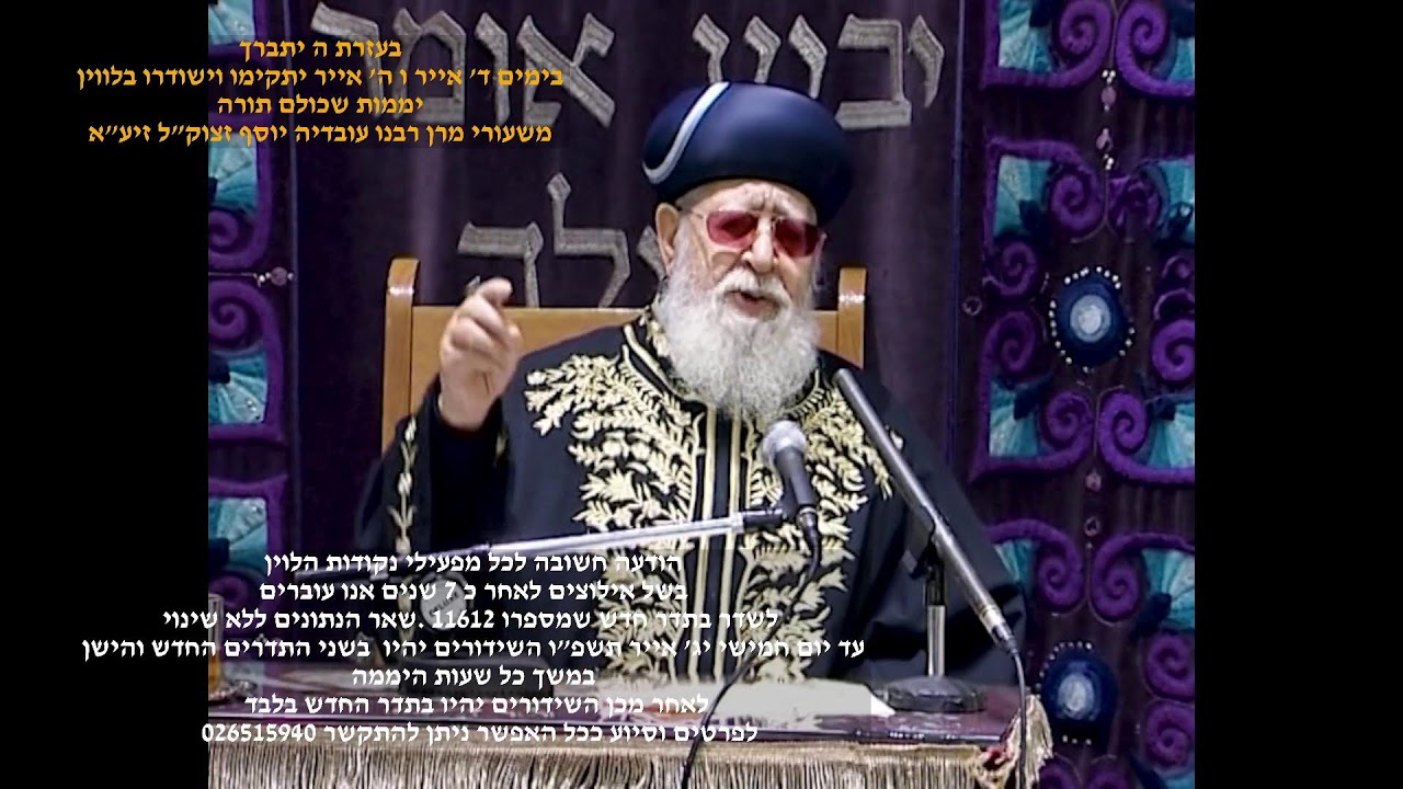 יום שכולו תורה משיעורי מרן רבנו עובדיה יוסף זצוק"ל זיע"א לעילוי נשמת בתיה בת שושנה ז"ל