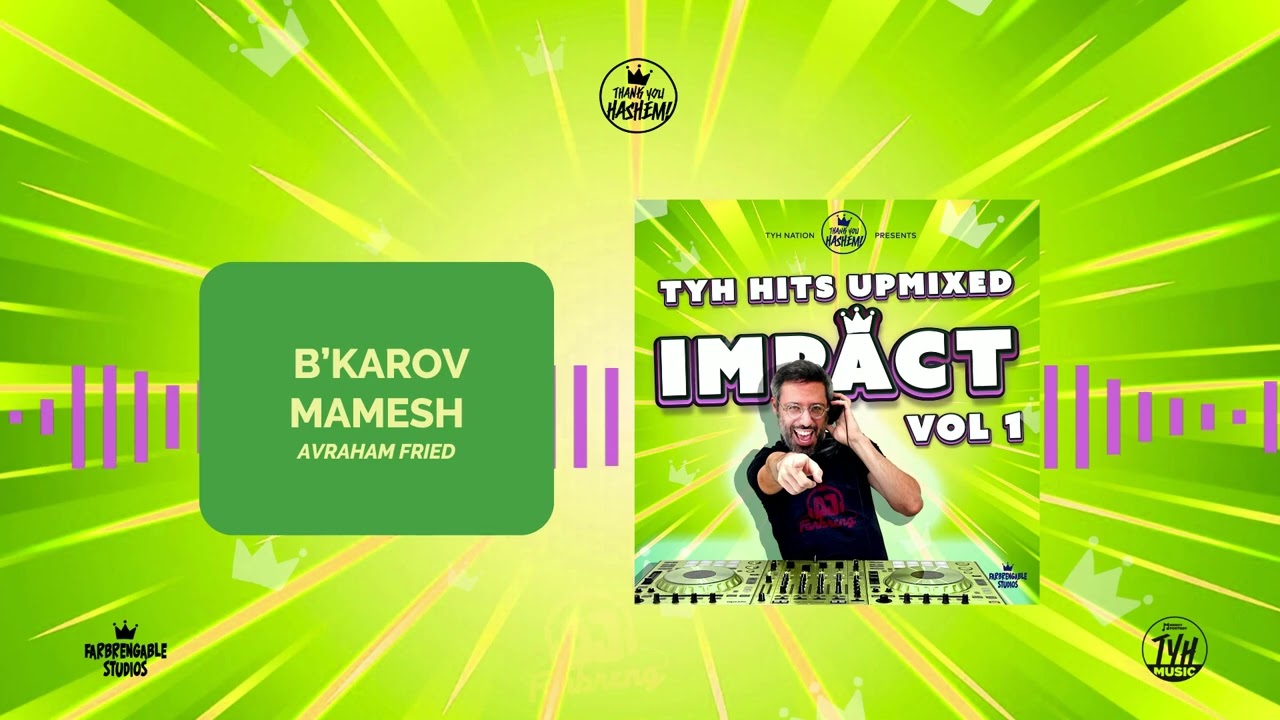 TYH Nation Presents TYH Hits Upmixed IMPACT Vol 1 1: Back of the Wagon (Upmix) Ft. Afikoman, Matisyahu, Alex Clare 2: Yidden (Upmix) Ft. Chaim Ghoori, Mendy Worch 3: Mi LaShem Elai (Upmix) Ft. Zusha 4: Chi Chi WaWa (Upmix) Ft. Mendy Worch 5: Any Day Now (Upmix) Ft. Sruly Green 6: Baderech(Upmix) Ft. Moshe Auslander 7: Happy Clappy (Upmix) Ft. Moshe Storch 8: B’karov Mamesh (Upmix) Ft. Avraham Fried Get ready for an awesome experience with Thank You Hashem Nation's new Upmix album! We've taken our most powerful and impactful songs and made them even better. Forget about passing fads – this music is here to stay, touching your neshama and inspiring positive change. DJ Farbreng's fresh energy and unique sound take our classic anthems to a whole new level. Get ready to dance and feel uplifted! Eight songs – a symbol of Hashem's limitless power – show how our music connects us to something bigger than ourselves. This album celebrates the impact our music has on everyone, no matter their age. So turn it up and let the music take over! It's going to be an incredible journey that will change you forever. Brace for IMPACT! For bookings: +1 (347) 680-4862 bookings@gmail.com Lyrics: זָאל שׁוֹין זַיין דִי גְאוּלָה בְּקָרוֹב מַמָשׁ װֶעלְן מִיר זוֹכֶה זַיין