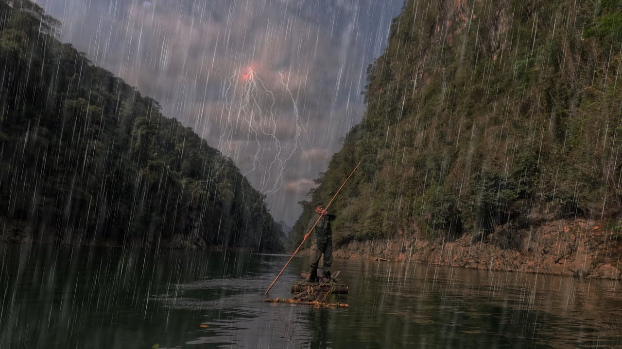 Heavy Rain, Thunder, Tropical Storm - Make a Primitive Boat, Sleep Overnight in a Cave During this Trip, I encountered a very heavy rain with lightning. I was here for a few days and needed to move to a place with many things to make it easier to survive without food. I cut bamboo to make food. into a primitive raft, I found a cave that seemed very suitable for sleeping overnight, and I slept there. There are many interesting things in the next videos. Please look forward to it! thank you for watching #bushcraft #bushcraftshelter #shelterbuilding #survival #campingheavyrian #storm #primitive #