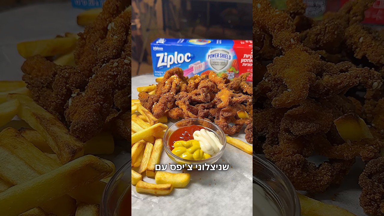 שניצלוני צ’יפס קריספיים עם טריק שלא ילכלך לכם כלום! בזכות השקיות סליידר של זיפלוק הכל נקי! 🔥 לא צלחות ולא כלים! חובה לנסות! טעים ברמות! בשיתוף עם פודי @foody_israel וזיפלוק מצרכים: 600 גרם חזה עוף פטם 1 כוס קמח לבלילה הרטובה: 2 ביצים L 1 כף חרדל צהוב 1 כף רוטב סויה 1 כף צ’ילי מתוק 1 כפית מלח לפירורי לחם: 1 כוס פירורי לחם זהב 1 כף פפריקה מרוקאית מתוקה 1 כפית גריל עוף 1 כפית מלח 2 כפות שומשום אופן ההכנה: 1: חותכים חזה עוף פטם לרצועות דקיקות ממש כמו צ’יפסים, פותחים שקית סליידר של זיפלוק ושמים בה כוס קמח, את רצועות חזה העוף מוסיפים לבפנים ומשקשקים עד שהקמח עוטף יפה את כל הרצועות (כך חוסכים בעבודה ובלכלוך כלים). 2: לשקית נפרדת מוסיפים את הביצים הסויה הצ’ילי החרדל והמלח ומערבבים עד לבלילה אחידה, מוסיפים את רצועות חזה העוף ומערבבים היטב עד שהבלילה עוטפת את כל הרצועות כמו שצריך. 3: לשקית זיפלוק שהיה בה הקמח (רציתי לחסוך) הוספתי כוס פירורי לחם זהב ותיבלתי עם מלח פפריקה מרוקאית מתוקה שומשום וגריל עוף ערבבתי תוך כדי שקשוק השקית. 4: לוקחים את רצועות העוף אחרי שהן עטופות טוב בבלילת הביצים ומוסיפים לשקית הזיפלוק עם פירורי הלחם ומשקשקים טוב, הפירורים ידבקו בצורה מושלמת ומה הטריק פה? שבעצם לא צריך לצפות רצועה רצועה, לא מלכלכים שום כלי, ויתרה מכך - לא תידבק לכם לאצבעות שם בלילת ביצים קמח ופירורי לחם מעצבנת כזאת שצריך כל פעם ללכת ולשטוף בכיור לפני שממשיכים לצפות את השניצלים! זה פשוט גאוני! 5: מחממים שמן לטיגון עמוק בסיר ברגע שמגיע ל-170 מעלות מוסיפים את “שניצלוני הצ’יפס” שלנו לטיגון עד להשחמה, מעבירים לרשת צינון כדי שתישמר הקריספיות ואוכלים, זה טעים ברמות ואפשר לאכול את זה כמו חטיף, תנסו! תנו תגובה ופרגנו בלייק! #שניצלים #שניצל #קריספי #ארוחתצהריים #ילדים #שבת #זיפלוק