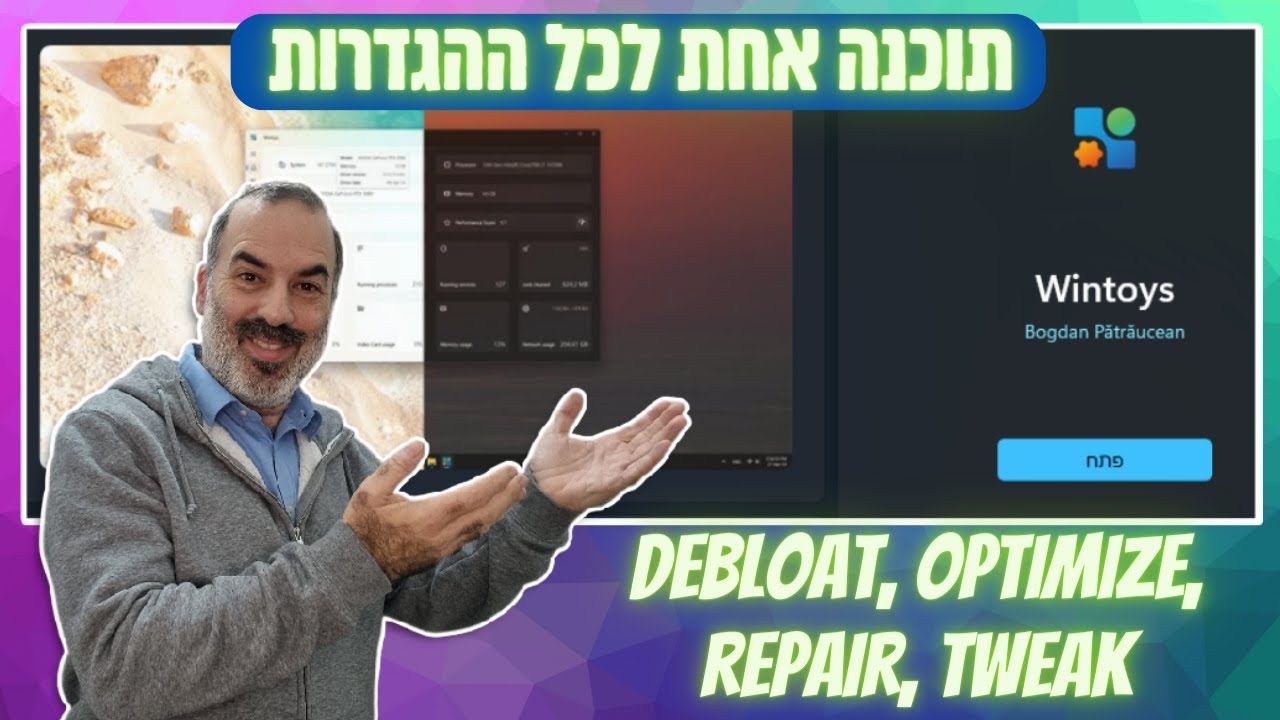 לאחרונה נתקלתי בתוכנה חדשה בחנות האפליקציות של מיקרוסופט בשם Wintoys. להבדיל מתוכנות שאני מביא לכם מגיטהאב, הרבה יותר נוח לי לסמוך על תוכנות בתוך חנות האפליקציות של מיקרוסופט, בהנחה שהן נבדקות יותר לעומק ממה שקורה בגיטהאב. אותה Wintoys מתיימרת לאגד את כל ההגדרות של ווינדוס במקום אחד, בנוחות ועם הסברים מה (כמעט) כל הגדרה עושה. המפתח של התוכנה מגדיר אותה כתוכנה שתעזור לכם להסיר תוכנות ותכונות של ווינדוס שאין לכם צורך בהם ובכך לגרום לווינדוס לרוץ מהר ויציב יותר. ---- 🔻 איפה אפשר למצוא אותי🔻 דיסקורד: https://discord.gg/AjMTSdvfQd ערוץ טלגרם: https://t.me/MyTechDeskGroup קבוצת פייסבוק: https://www.facebook.com/groups/mytechdesk עמוד פייסבוק: https://www.facebook.com/mytechdesk/ 🔻דרכים לתמיכה בערוץ🔻 קנו לי כוס קפה (או כמה כוסות): https://bit.ly/3edwdEb תרומה דרך פייפאל: https://bit.ly/3SCaPYa תרומה דרך סטרים אלמנטס: https://bit.ly/3Cd88Wb 🔻עמלה קטנה לערוץ אם תקנו באתרים דרך הלינקים האלה🔻 KSP: https://ksp.co.il/item/F9819AX&homepage Amazon: https://amzn.to/2HNmeoA Ali Express: https://bit.ly/3jXLTJq Banggood: https://bit.ly/3jRjmFr 🔻כלים ליוטיוברים🔻 MorningFame | חקר מילות מפתח: https://morningfa.me/invite/MyTechDesk TubeBuddy | אופטימיזציה של סרטונים: https://www.tubebuddy.com/MyTechDesk VidIQ | אופטימיזציה של ערוץ יוטיוב: https://vidiq.com/MyTechDesk Canva | יצירת תמונות מקדימות: https://www.canva.com/join/drz-gbq-fnf 🔻 ריכוזים כל הלינקים הנ"ל בצורה ברורה🔻 https://linktr.ee/mytechdesk הבהרה: כל המוצג בסרטון הינו לטובת הדרכה בלבד. אינני נושא באחריות לכל מקרה של תקלה, וירוס, באג, שבר או כל בעיה אחרת שתיגרם בעקבות נסיון לחקות את פעולות המציג. בנוסף, התוכנות המוצגות בערוץ אינן שייכות למציג ואין לו חלק בכתיבת הקוד שלהן ועל כן אין לו אחריות על כל תקלה שתיגרם בעקבות השימוש בהן. על כן, חלה חובה על המשתמש לבדוק בעצמו את כל הפעולות לפני עשייתן ואין לבוא למציג בטענה כלשהי מעצם ביצוע פעולה בעקבות הסרטון. #MyTechDESK