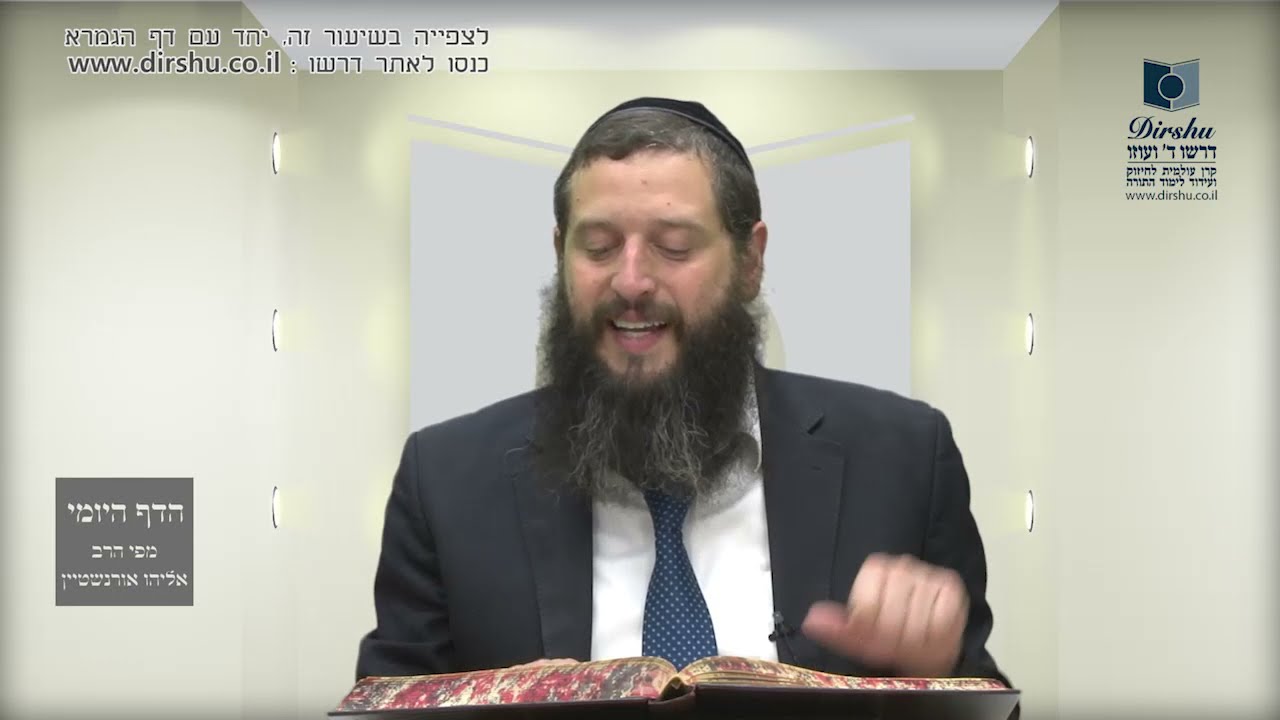 דף היומי - שיעורי הדף היומי בגמרא תלמוד בבלי מסכת סוכה מבית "דרשו" עם הרב אליהו אורנשטיין שליט"א, הדף יומי קצר וישיבתי לשיעורים נוספים באתר דרשו: http://www.dirshu.co.il/
