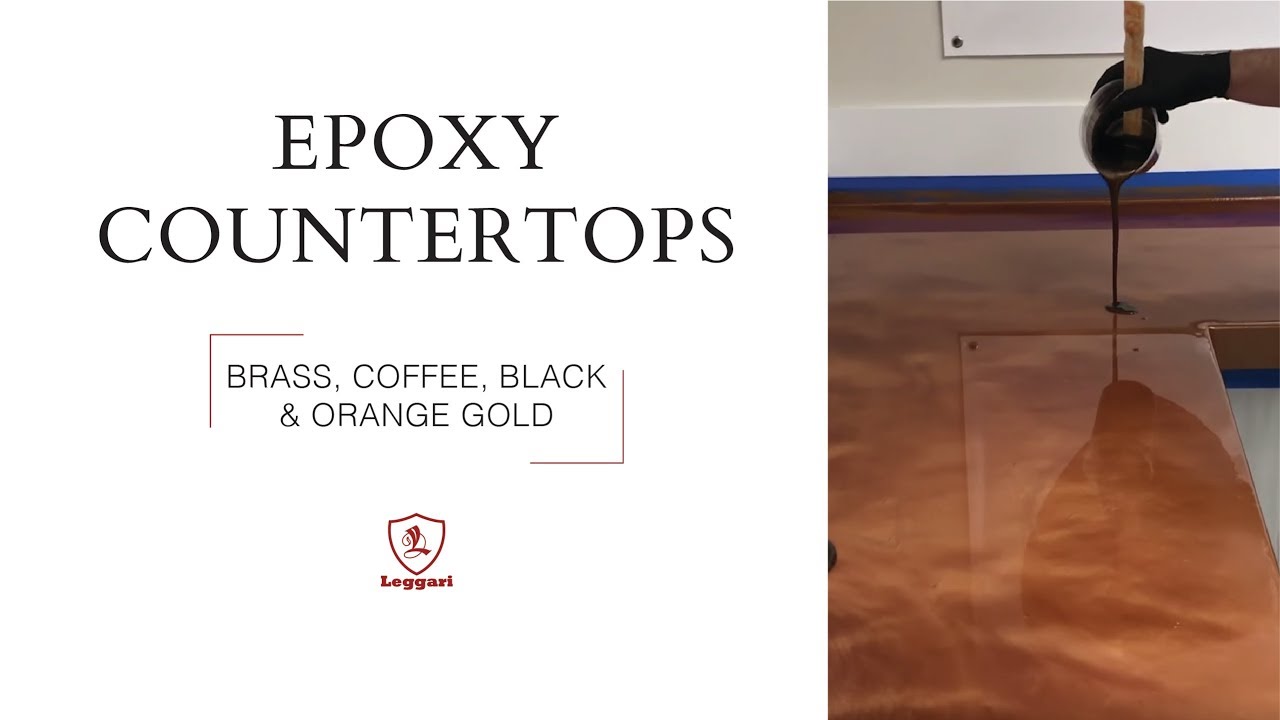 Epoxy Countertop Coating in Brass, Coffee, Black and Orange Gold Metallics