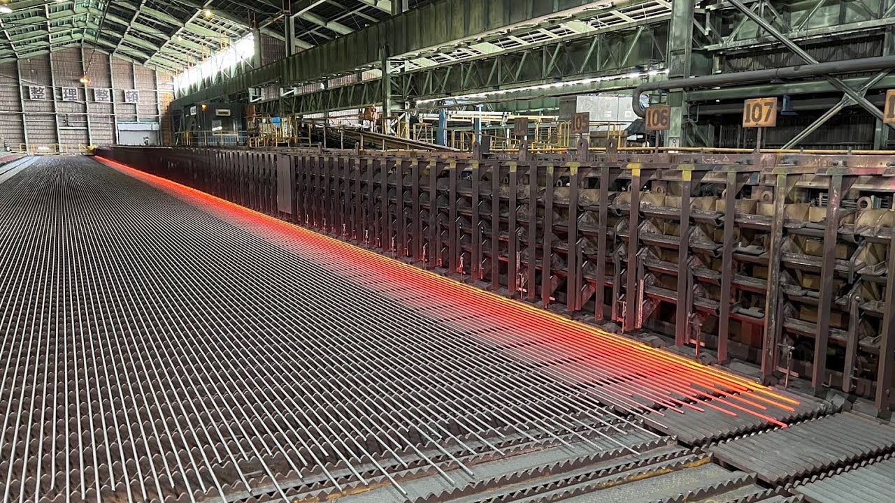 鉄筋を大量生産するプロセス。素晴らしい日本の鉄筋製造工場。今まで見たことないものづくりの工程