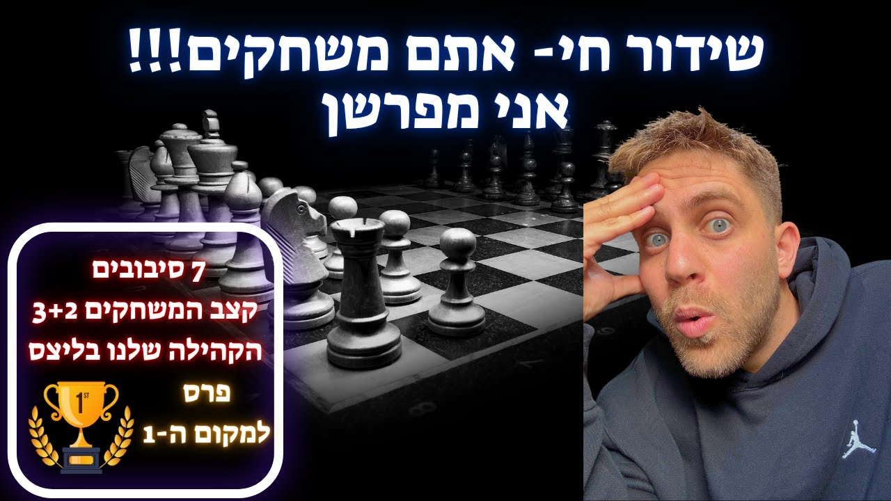 ברוכים הבאים לסרטון מיוחד ומרגש בו אני משדר את טורניר הקהילה השני מסוגו – טורניר שחמט ייחודי שנערך באתר Lichess, בהשתתפות שחקני קהילה מכל רחבי הארץ, וכולו מוקדש למען החטופים, החיילים והעם שלנו. הטורניר כולל 7 סיבובים בקצב 3+2, והוא מלא במתח, טקטיקות חדות, הפתעות ואווירה מיוחדת של אחדות וגאווה. אני, רב-אמן ניצן שטיינברג, מפרשן את המהלכים בשידור חי, עובר בין הלוחות, מנתח עמדות בזמן אמת, ומשתף אתכם בחוויית שחמט מרתקת – עם משמעות הרבה מעבר למשחק עצמו. הסרטון הזה הוא לא רק חגיגה של שחמט תחרותי ואיכותי, אלא גם הזדמנות להרגיש חלק ממשהו גדול. 📌 אם גם אתם רוצים לקחת חלק – שתפו, הגיבו, והצטרפו לקבוצת ליצ'ס של הקהילה! יחד אנחנו משחקים, מתקדמים – ולא שוכחים לרגע למה התכנסנו. #שחמט #טורנירשחמט #שחמטישראלי #קהילתשחמט #למעןהמדינה #למעןהחטופים #פרשנותשחמט #רבאמןניצןשטיינברג #שחמטבלייב #ליצסשחמט 🎓 לימוד שחמט בכיף לילדים: 🔹https://www.chessworld.io/ 🔹אייפון: https://apps.apple.com/us/app/chessworld-chess-for-kids/id1112656776 🔹אנדרואיד: https://play.google.com/store/apps/details?id=com.altermanchess.AltermanChessEdu 🎁 קוד קופון בלעדי: קבלו 20% הנחה על רכישת מנוי מתקדם באפליקציה הקוד: nitzan2025 ,בתוקף עד ה־30.9 הירשמו בחינם לאתר שידהים אותכם! באמצעותו תוכלו ללמוד פתיחות, לשנן וריאנטים, לשפר את הזיכרון ולהשתפר בשחמט ופשוט לנצח. https://www.chessshare.com/# ♟️ הירשמו ל-Outpost – הבית החדש לשחקני שחמט: https://outpostchess.com/?utm_source=YouTube&utm_medium=Nitzan אימייל לשליחת משחקים עבור נחש את מד הכושר ונחש את הערכת העמדה! nitzan.steinberg18@gmail.com 🎯 הצטרפו עכשיו לקבוצת הליצ'ס של הקהילה! 🏆 תחרויות, פרסים, ועוד הפתעות! 🔗 https://lichess.org/team/DR3Y5DS6 | סיסמה: 2025! 💙 נהנים מהתכנים שלי? אפשר לתמוך כאן: https://www.paypal.me/NitzanSteinbergChess 📱 הרשתות החברתיות שלי: 🔹 אינסטגרם: https://www.instagram.com/nitzan_steinberg_/ 🔹 טוויץ': https://www.twitch.tv/nitzansteinbergchess 🔹 פייסבוק: https://www.facebook.com/nitzan.steinberg 🔹 דיסקורד: https://discord.com/invite/t8Anrz5VpM 🔹טוויטר: https://twitter.com/SteinbergNitza1 🔹ערוץ יוטיוב באנגלית: https://www.youtube.com/@UCOPwWRP_SvWb7r6pnfs41Ww 🔹לינקדין: https://www.linkedin.com/in/nitzan-steinberg-a62112217/ 💬 קבוצת וואטסאפ פתוחה: 🔹https://chat.whatsapp.com/EdTr2ZCClu1HX9HHEpEhsx ♟️ פרופילים אישיים שחמט 🔹פידה: https://ratings.fide.com/profile/2801795 🔹בצ'ס קום: https://www.chess.com/member/nitzan_steinberg 🔹בליצ'ס: https://lichess.org/@/Nizi3